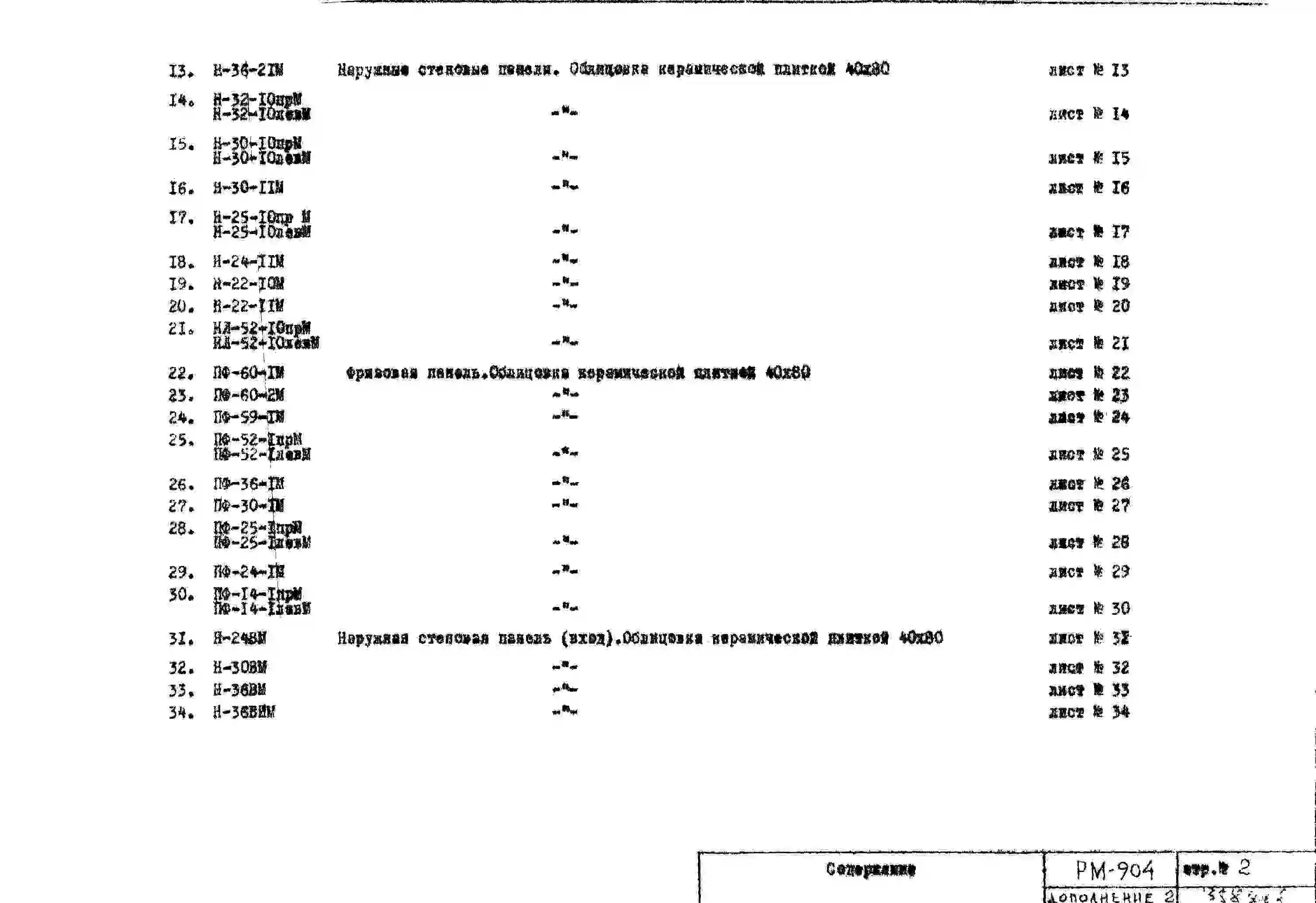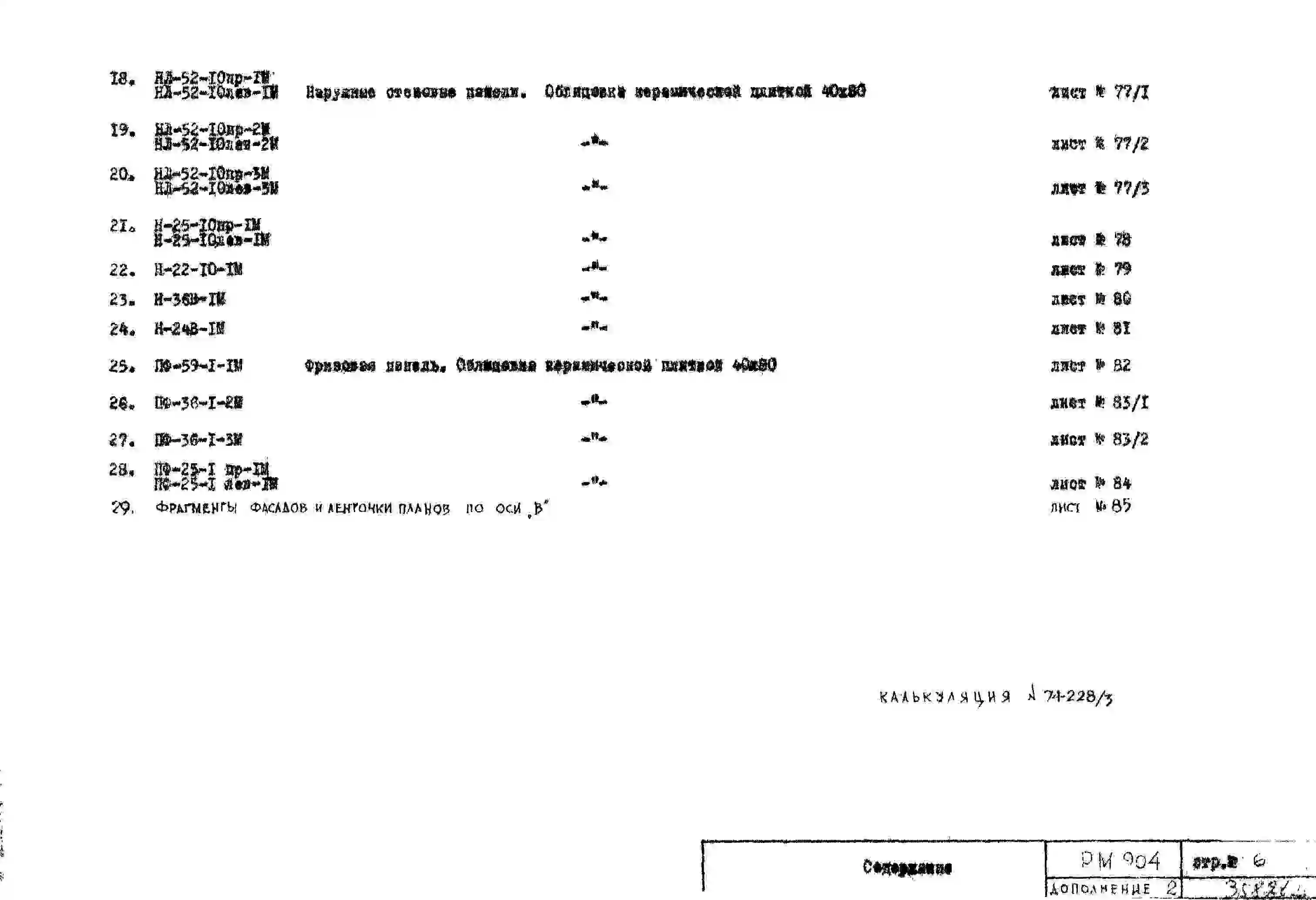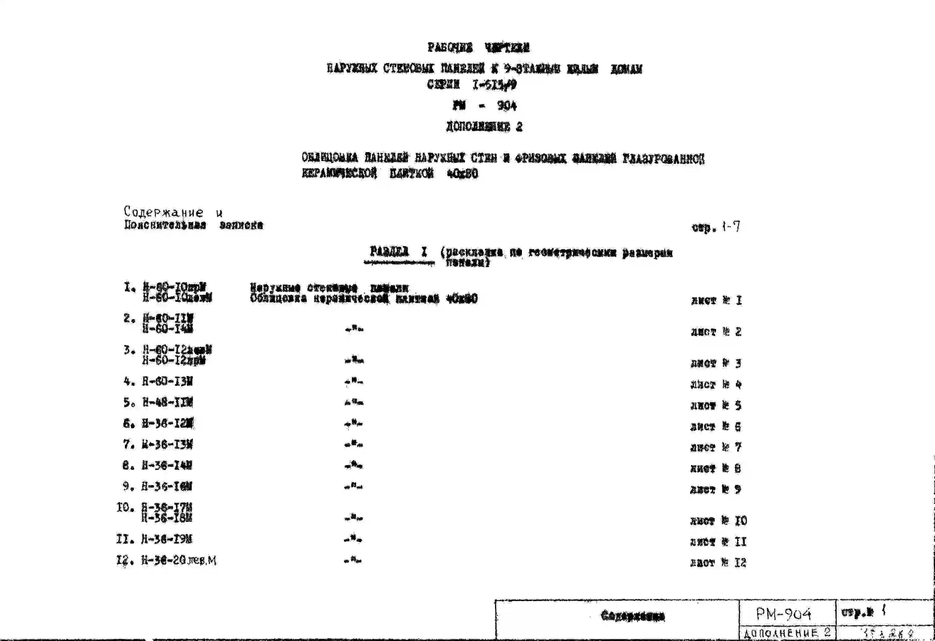 Шифр РМ-904 Наружные стеновые панели к 9-этажным жилым домам серии 1-515/9 (1974 г.)