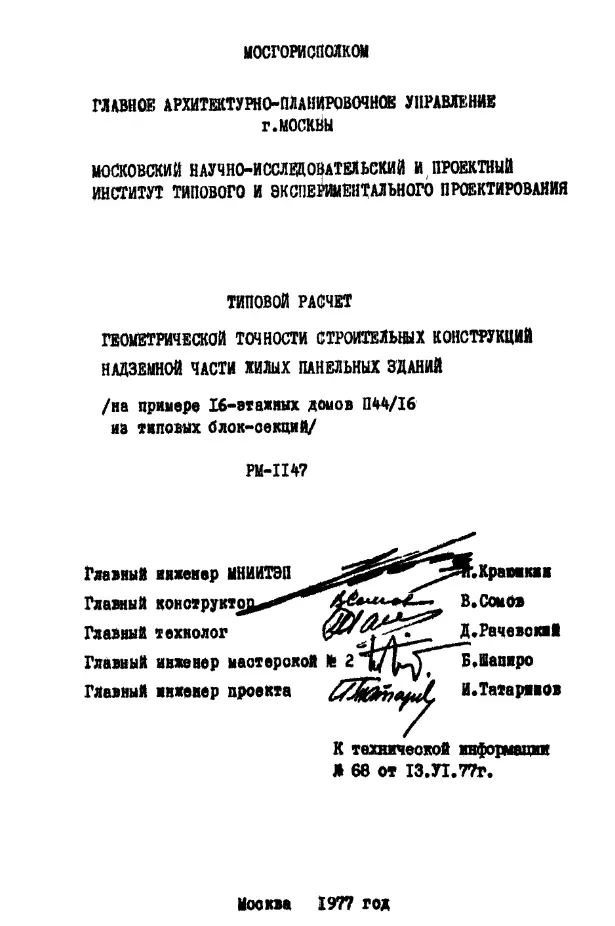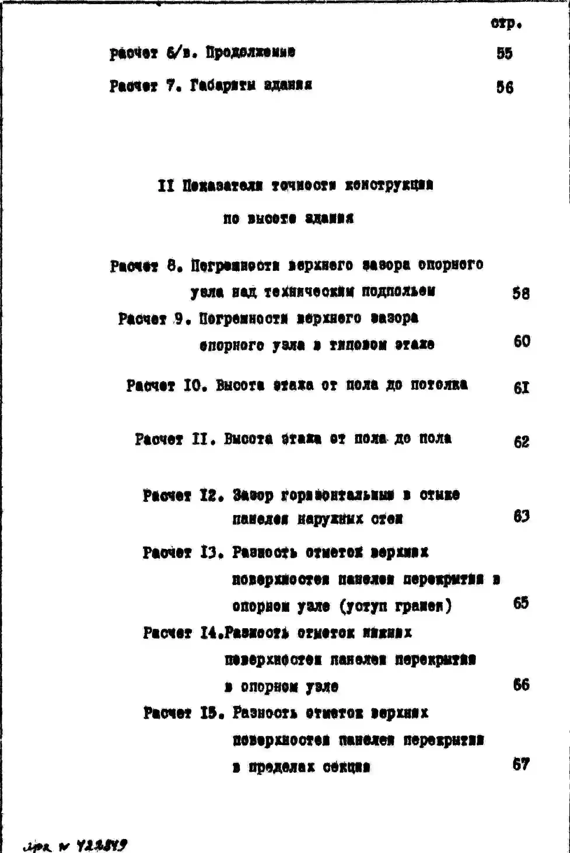 Шифр РМ-1147 Типовой расчет геометрической точности строительных конструкций надземной части жилых панельных зданий (на примере 16-эт.домов П44/16 из типовых блок-секций) (1977 г.)