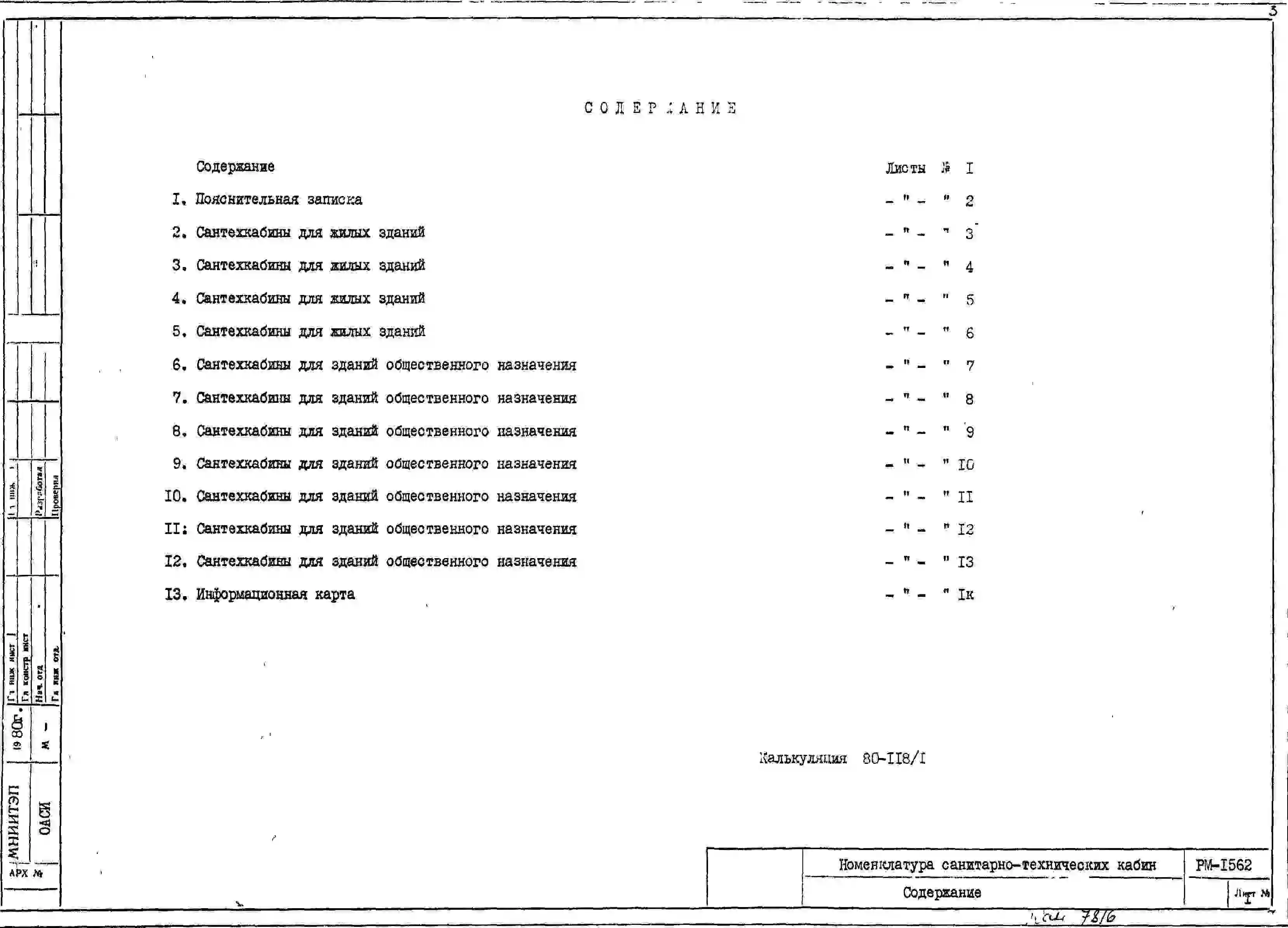 Шифр РМ-1562 Номенклатура санитарно-технических кабин заводского изготовления, предназначенных для применения в строительстве жилых и общественных зданий в г.Москве (1980 г.)