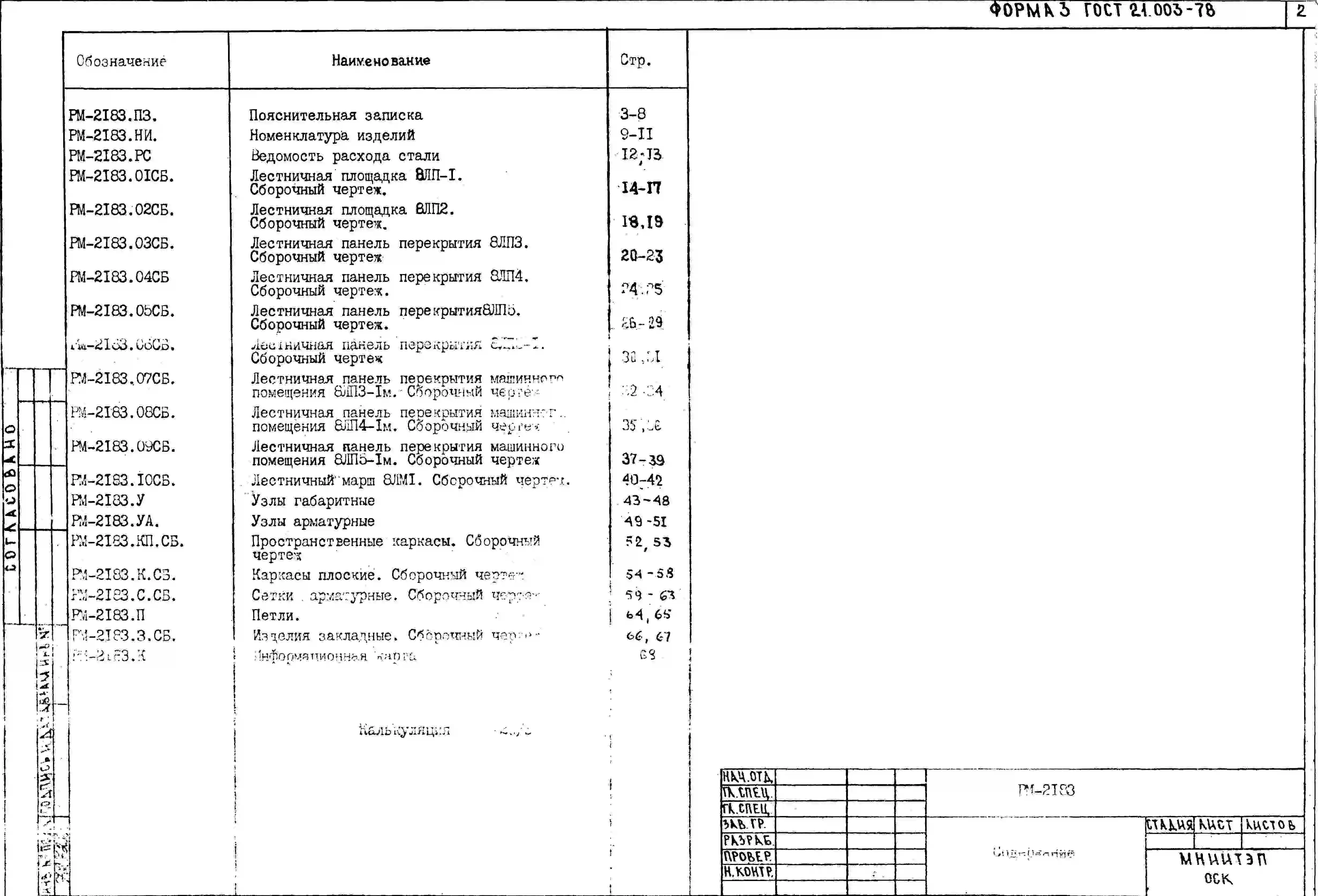 Шифр РМ-2183 Лестничные площадки и марш ( для экспериментального строительства жилого дома серии ПШ в Северном Бутово) (1990 г.)