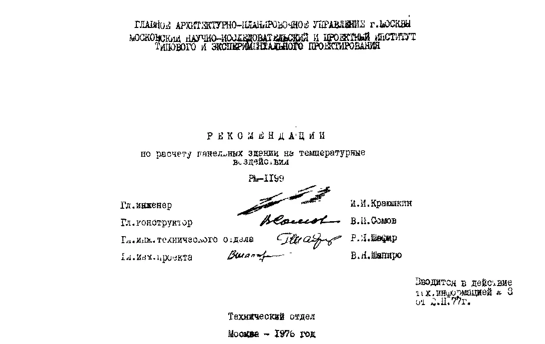 Шифр РМ-1199 Рекомендации по расчету панельных зданий на температурные воздействия (1976 г.)