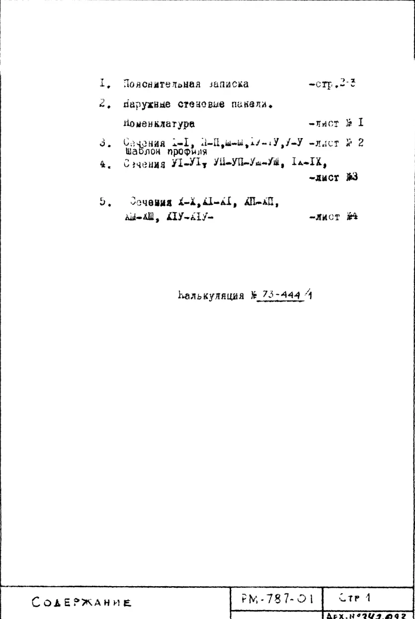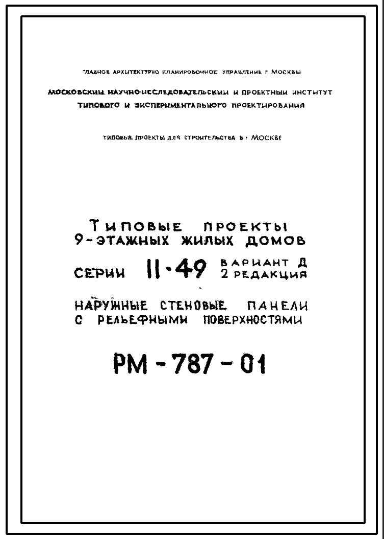 Шифр РМ-787-01 Наружные стеновые панели с рельефными поверхностями для домов серии II-49 Вариант Д. Редакция 2 (1973 год)