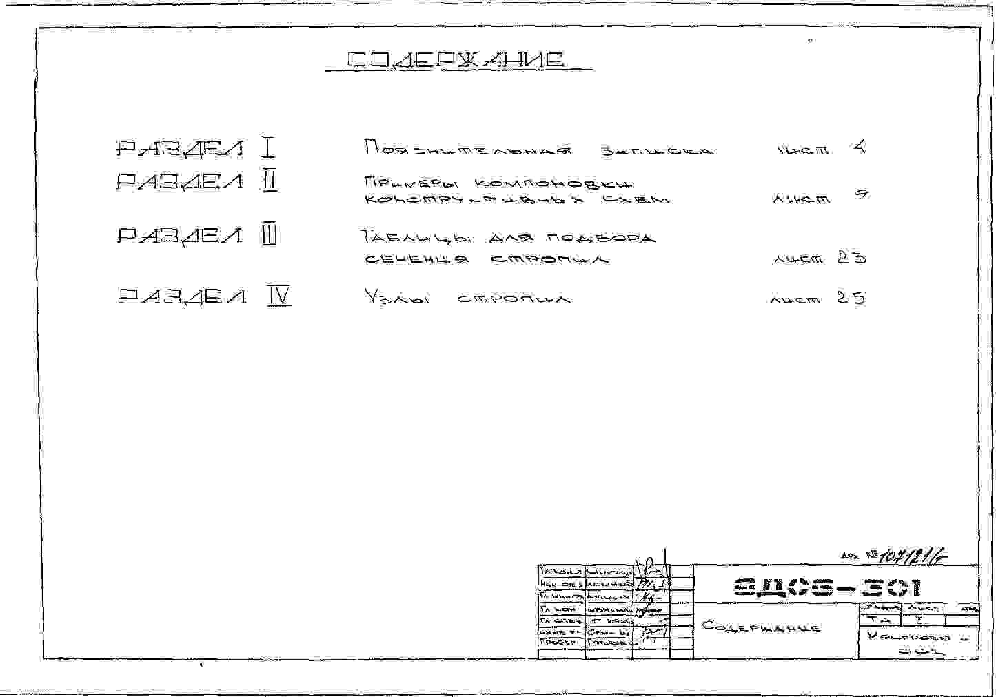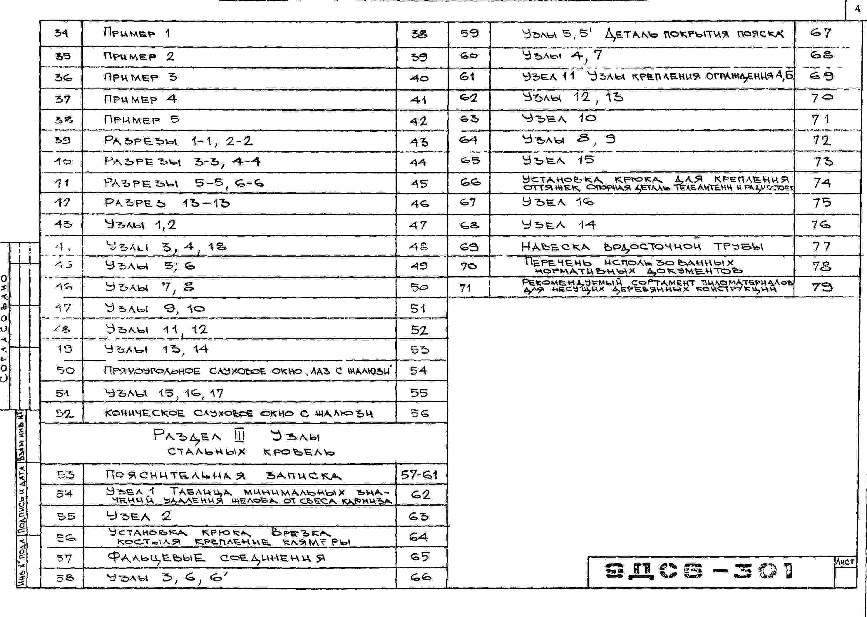 Шифр 9ДС6-301 Конструкции стальных скатных крыш жилых домов с наружными водостоками и холодным чердаком (альбом типовых узлов и деталей)
