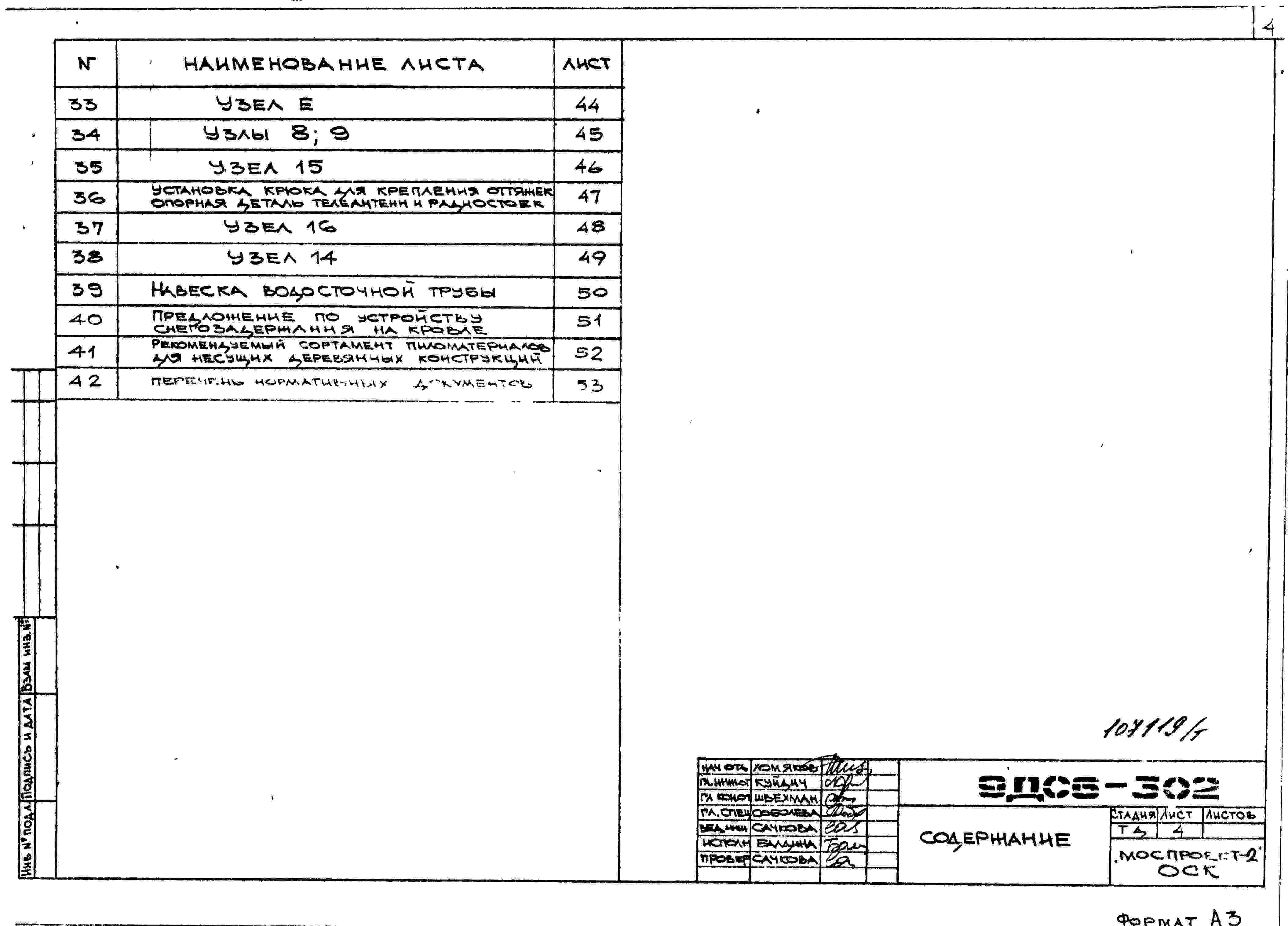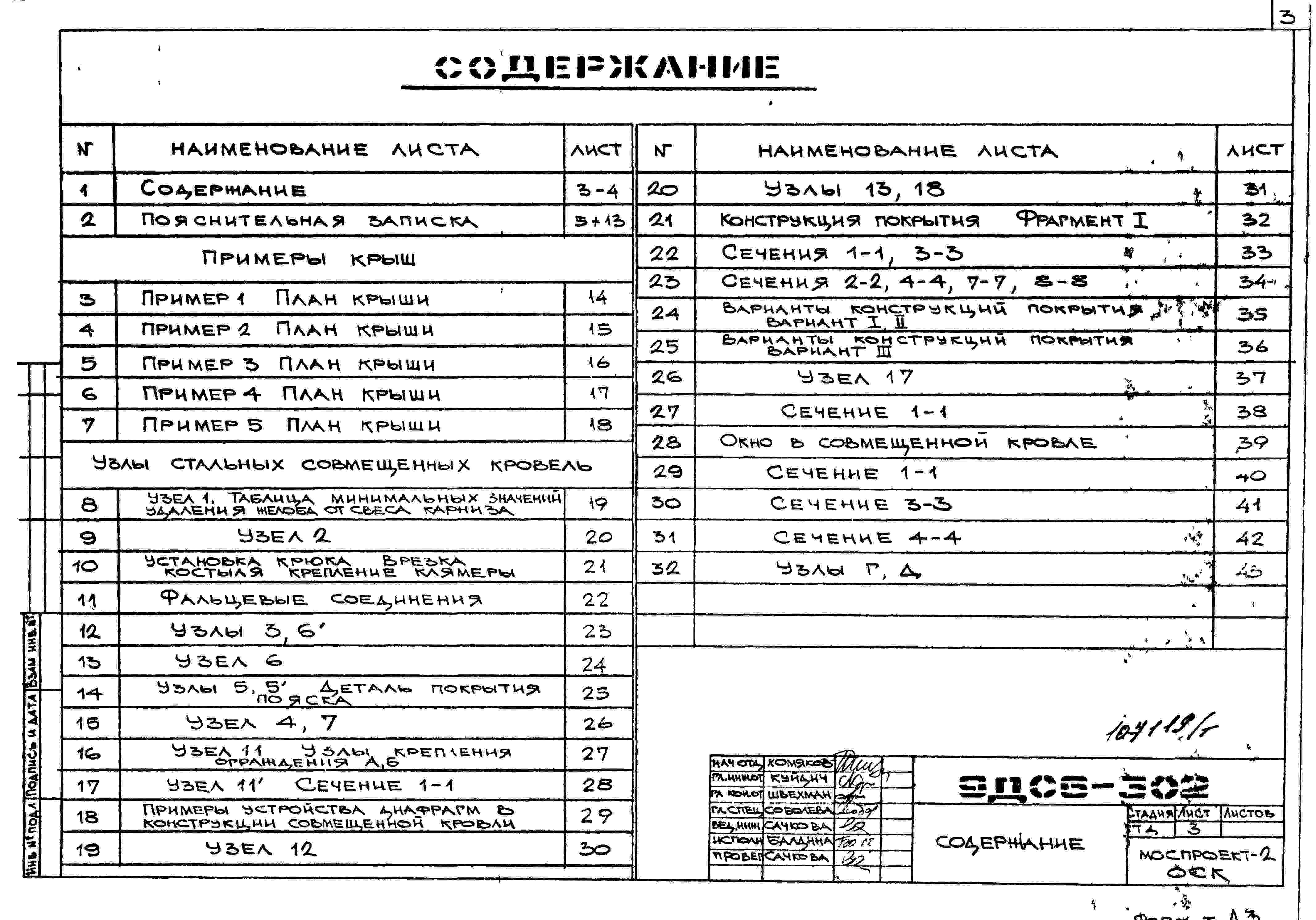 Шифр 9ДС6-302 Конструкции стальных скатных совмещенных крыш жилых домов с наружным и внутренним водостоками (альбом типовых узлов и деталей)