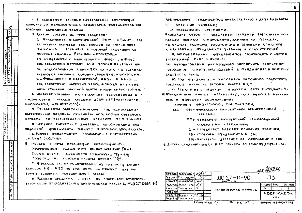 Шифр ДС 27-11-90 Фундаменты монолитные под колонны каркасных зданий