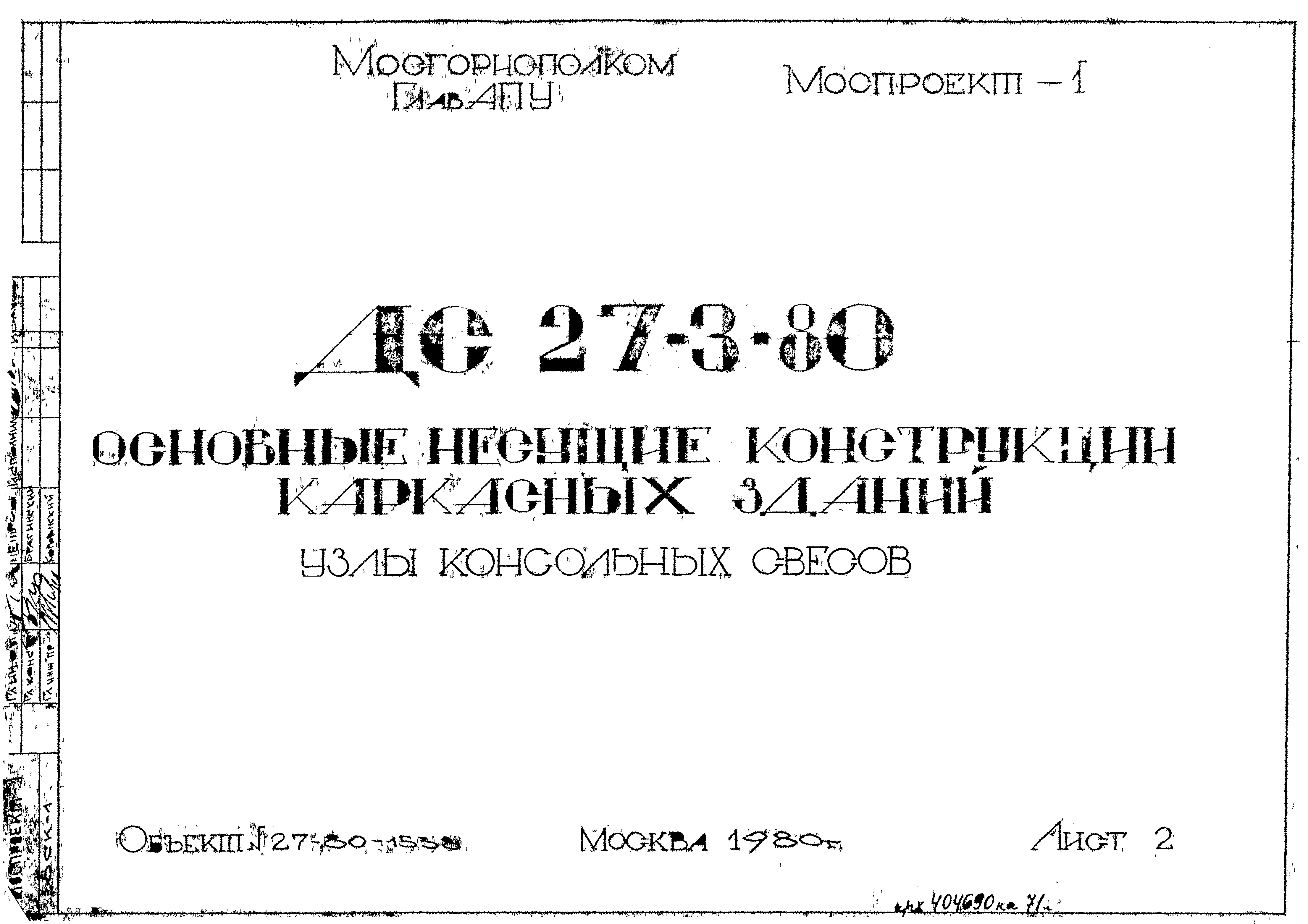Шифр ДС 27-3-80 Основные несущие конструкции каркасных зданий (1980 г.)