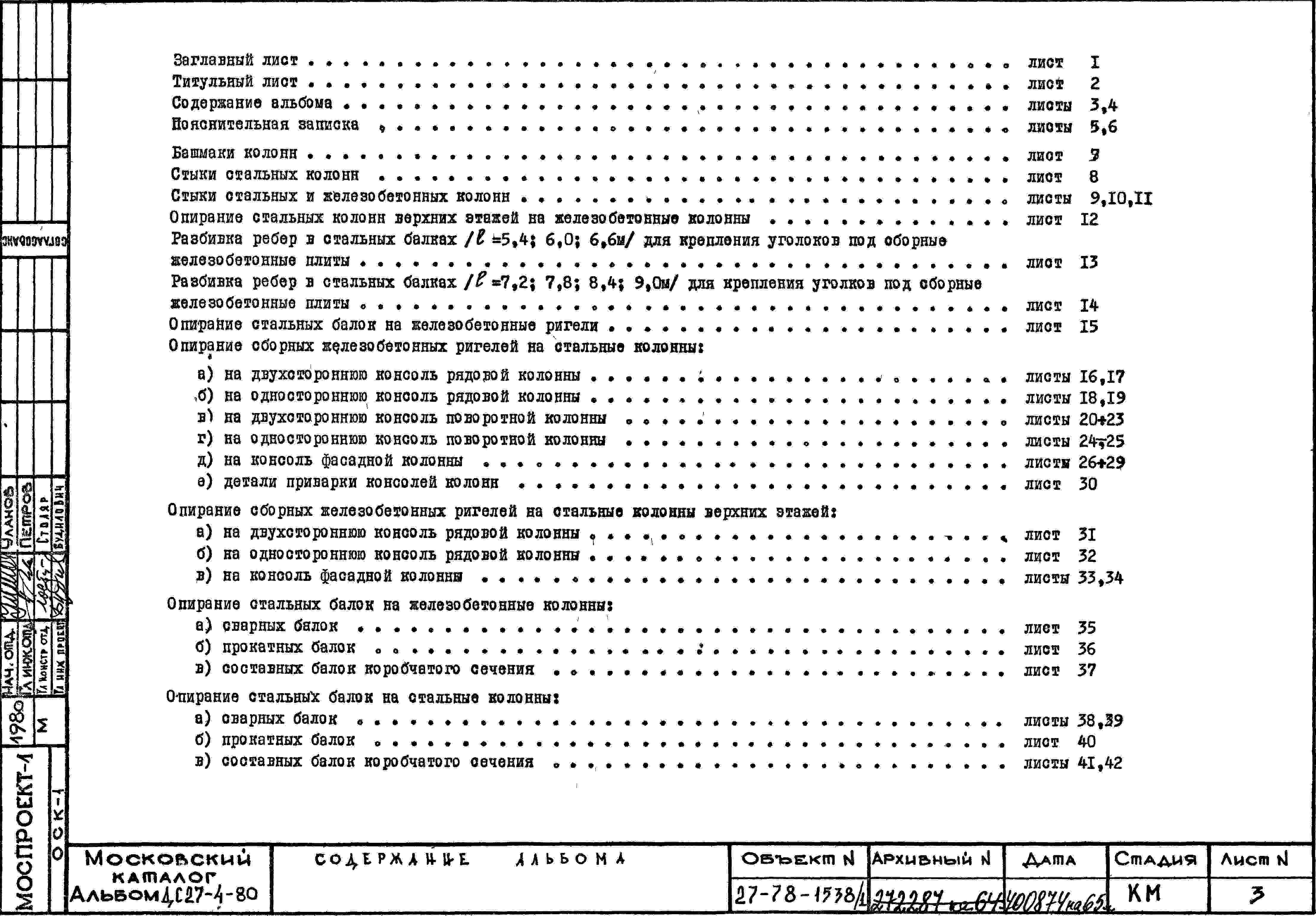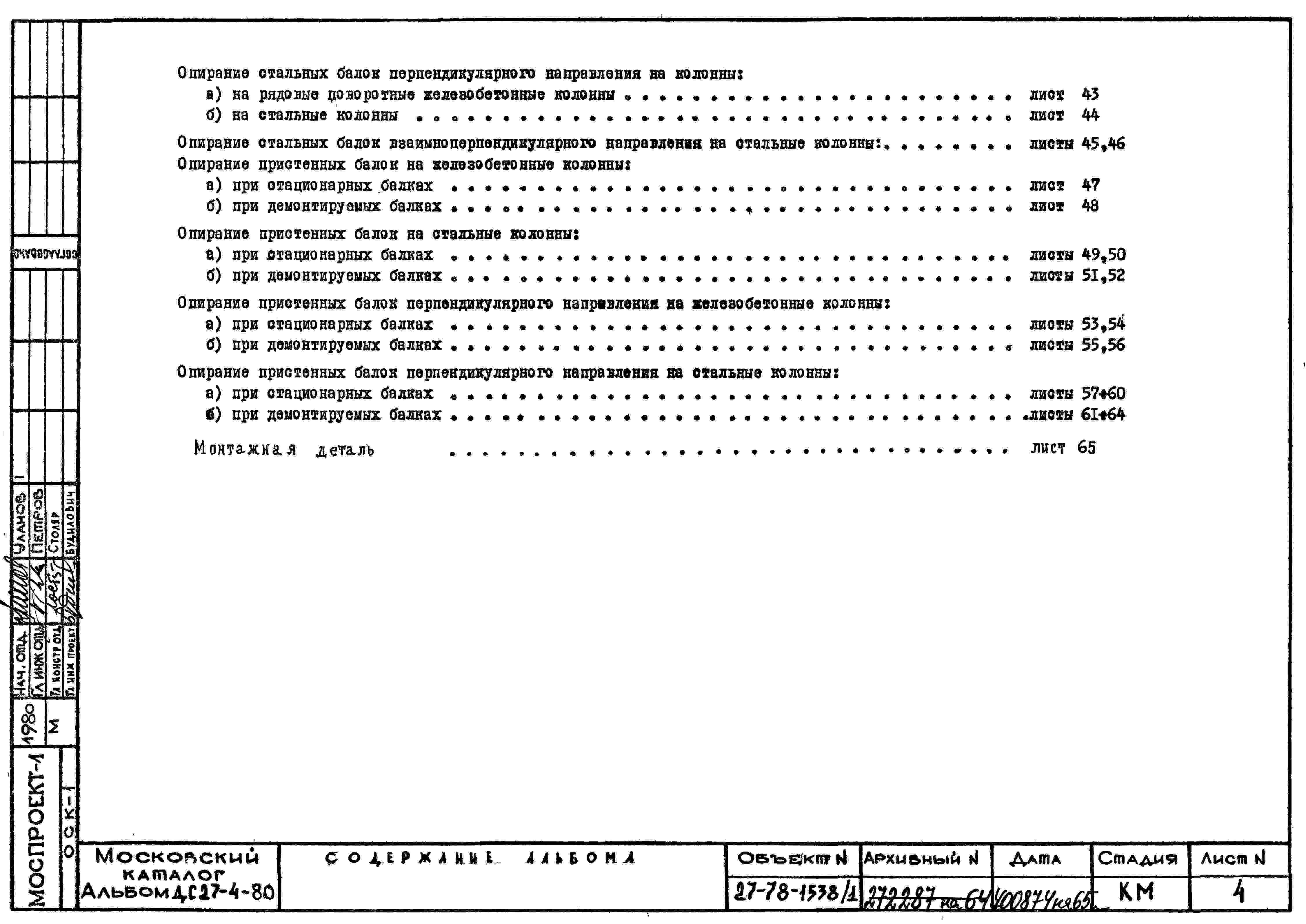 Шифр ДС 27-4-80 Стальные несущие конструкции каркасных зданий из изделий номенклатуры КМС-К1 Узлы (1980 г.)