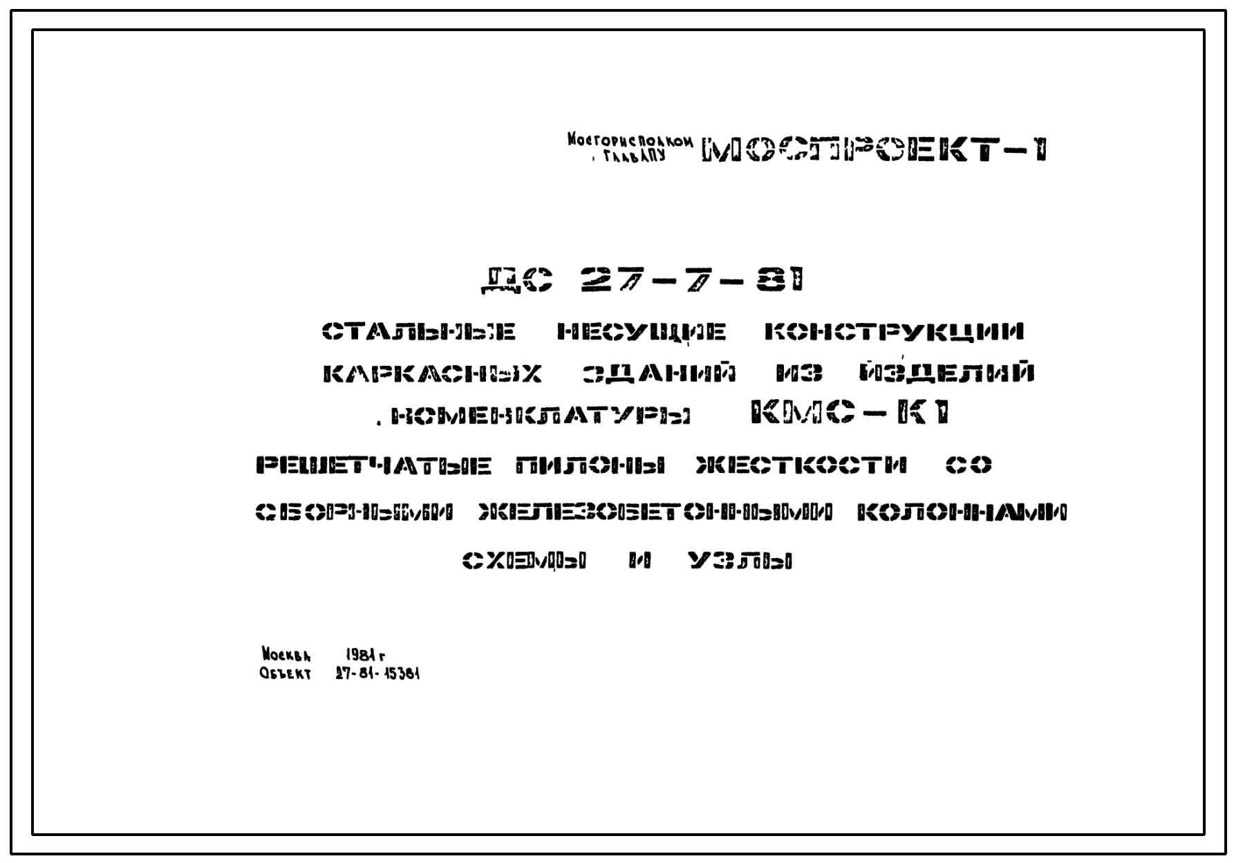 Шифр ДС-27-7-81 Стальные несущие конструкции каркасных зданий из изделий номенклатуры КМС-К1. Решетчатые пилоны жесткости со сборными железобетонныеми колоннами (1981 г.)