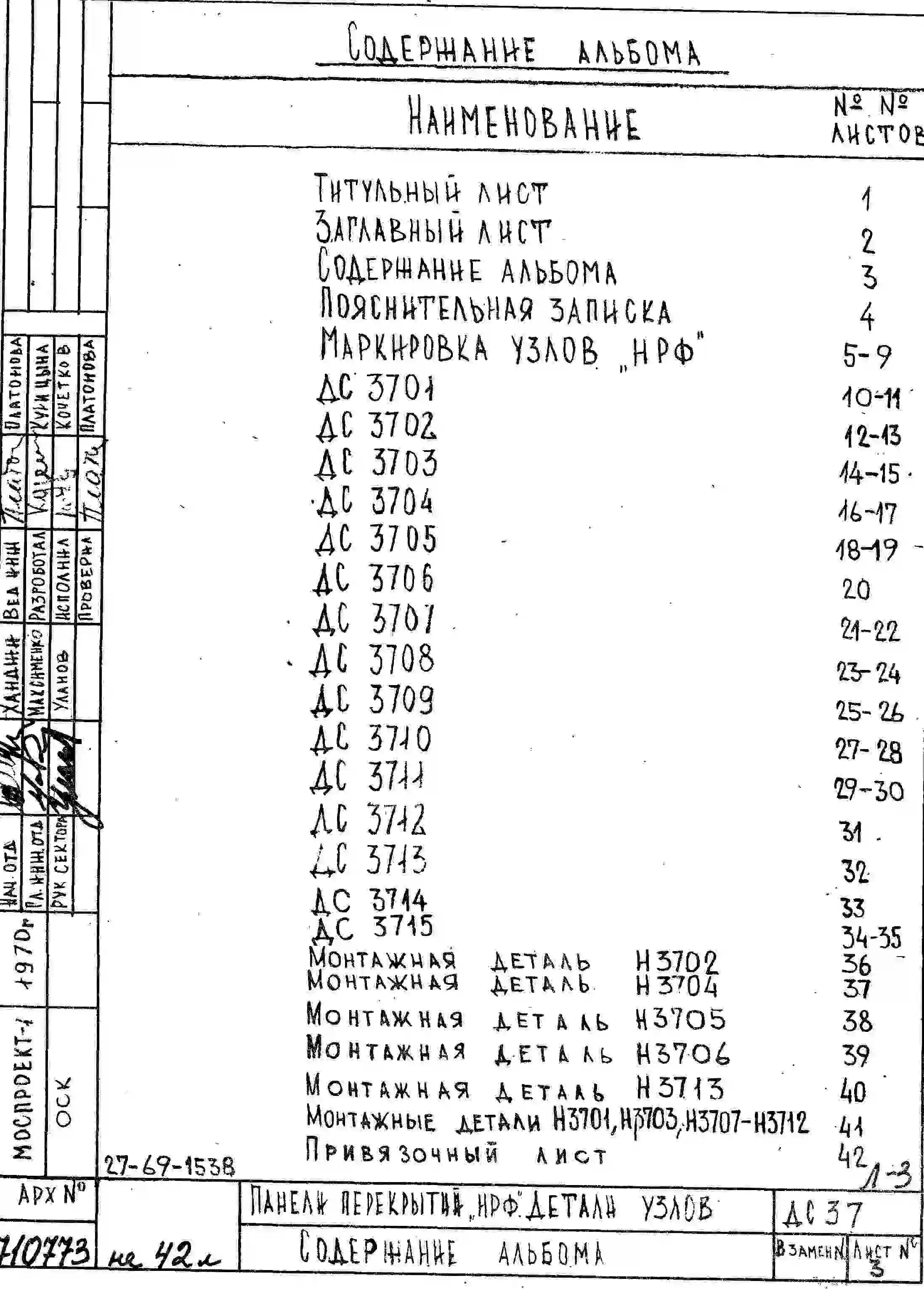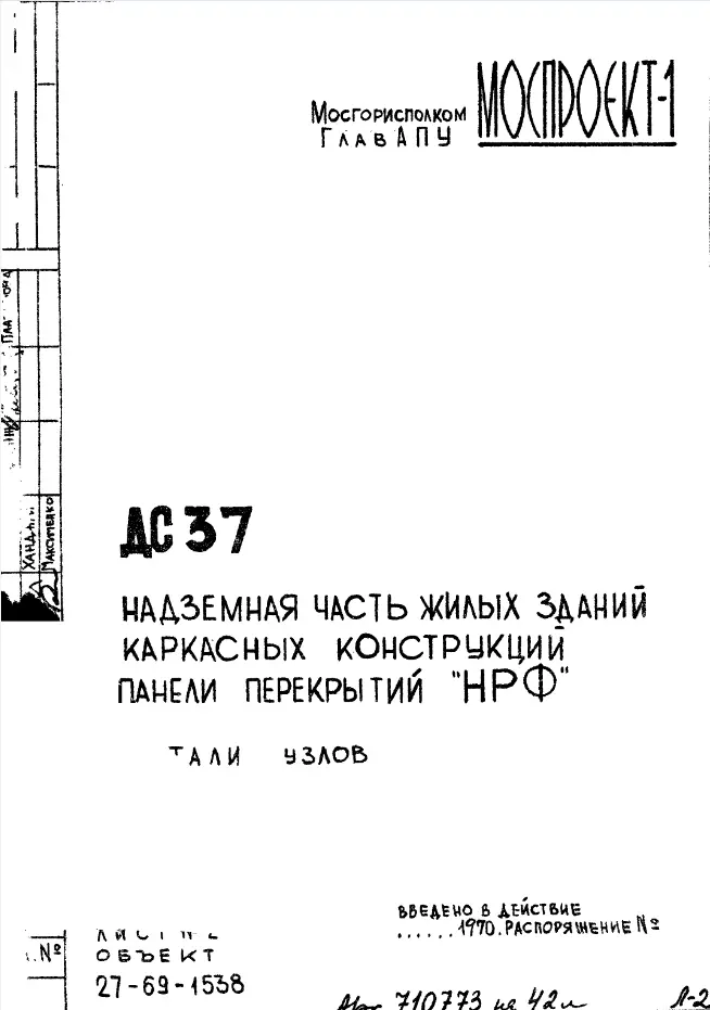 Шифр ДС 37 Надземная часть жилых зданий каркасных конструкций. Панели перекрытий "НРФ" (1970 г.)