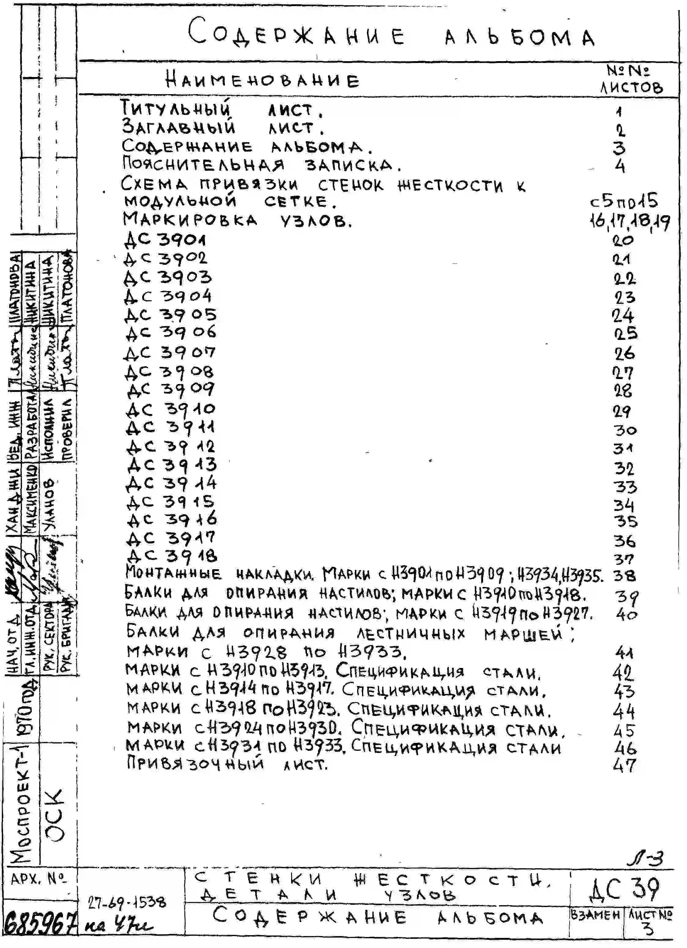 Шифр ДС 39 Надземная часть жилых зданий каркасных конструкций. Стенки жесткости (1970 г.)