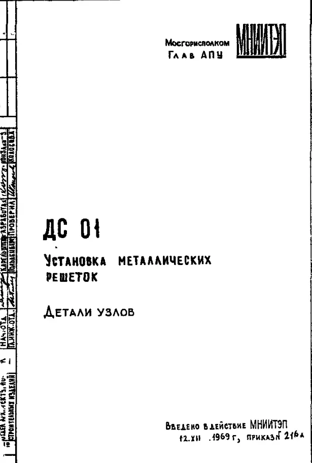 Шифр ДС 01 Установка металлических решеток (1969 г.)