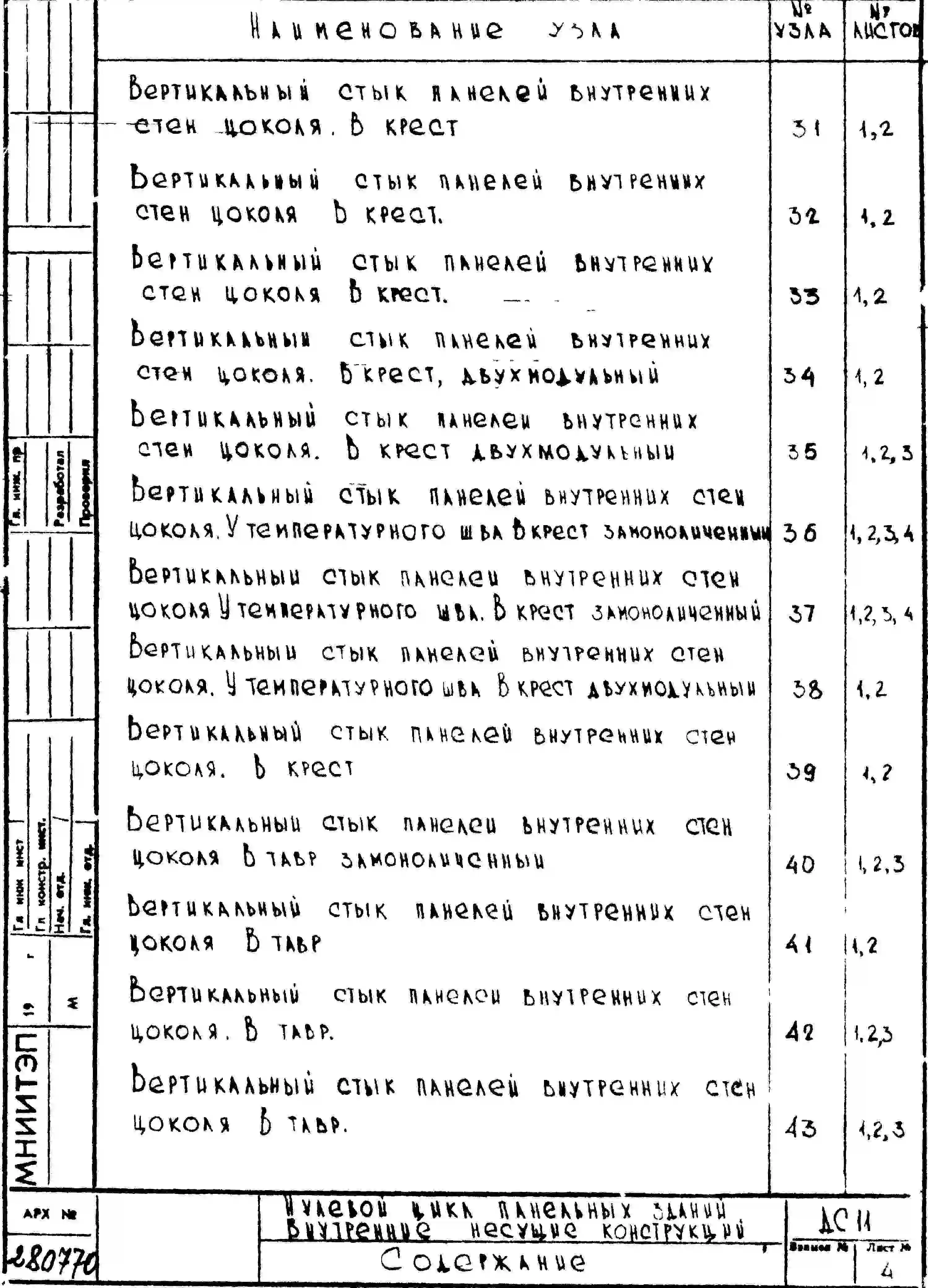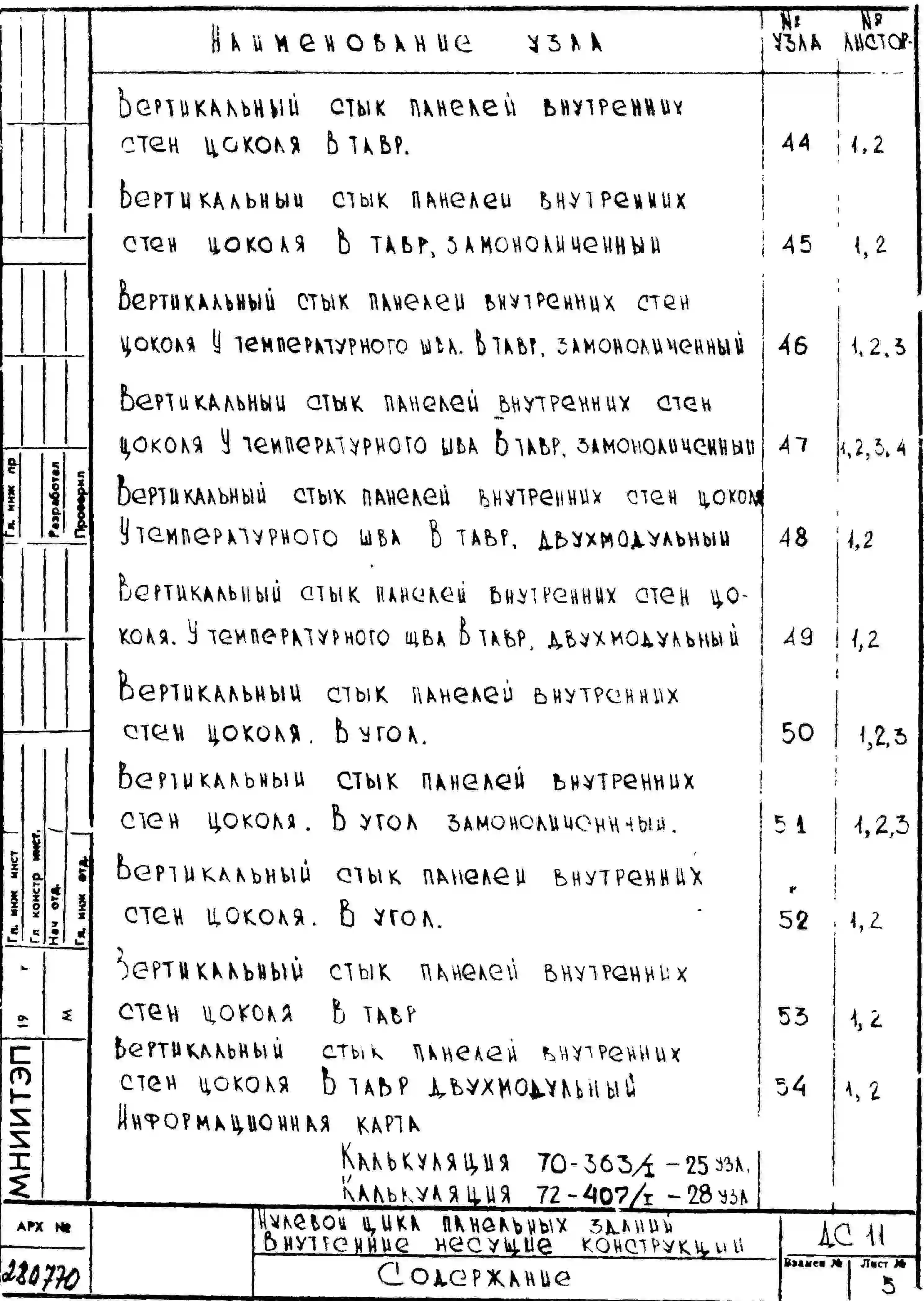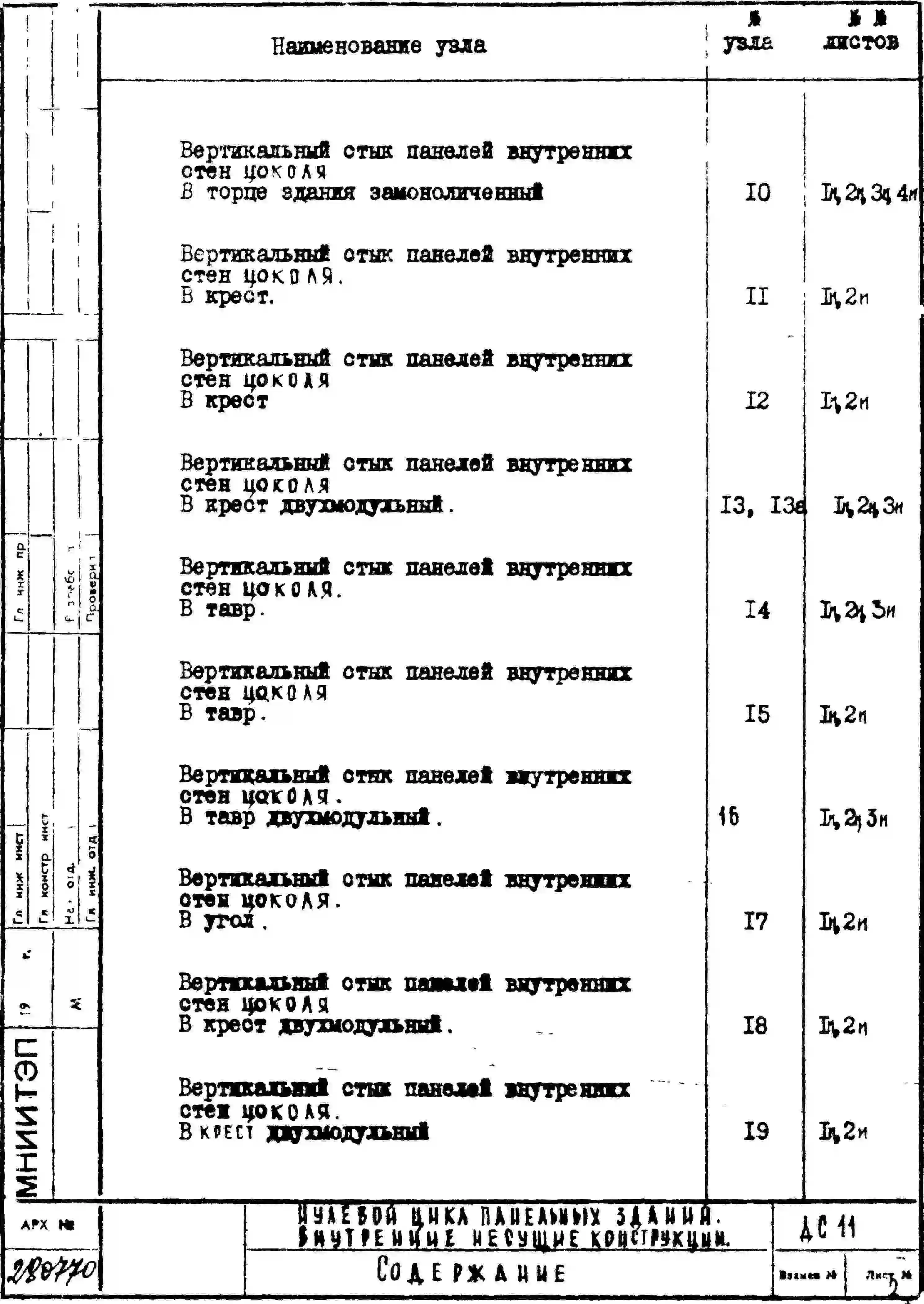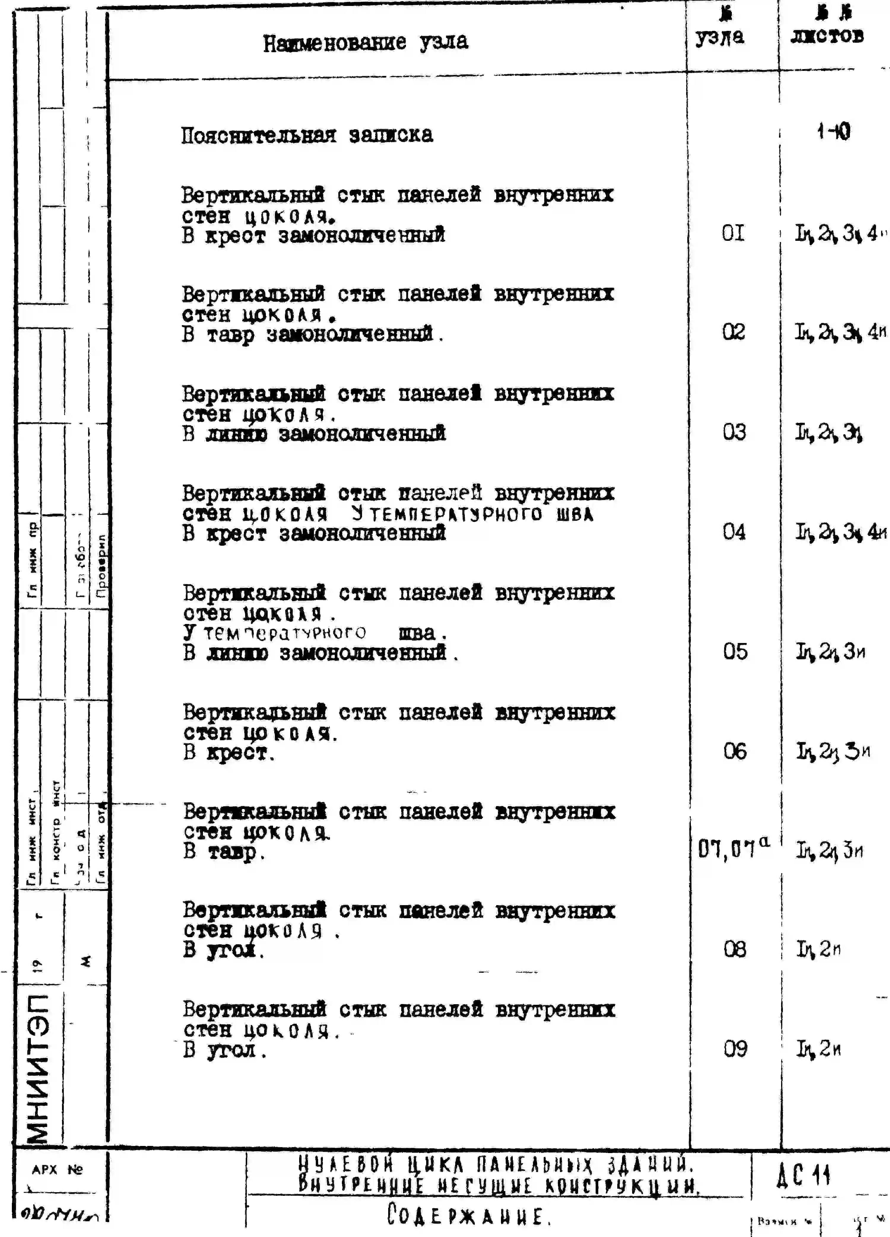 Шифр ДС 11 Нулевой цикл пенельных зданий внутренние несущие конструкции (1970 г.)