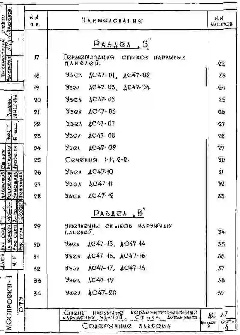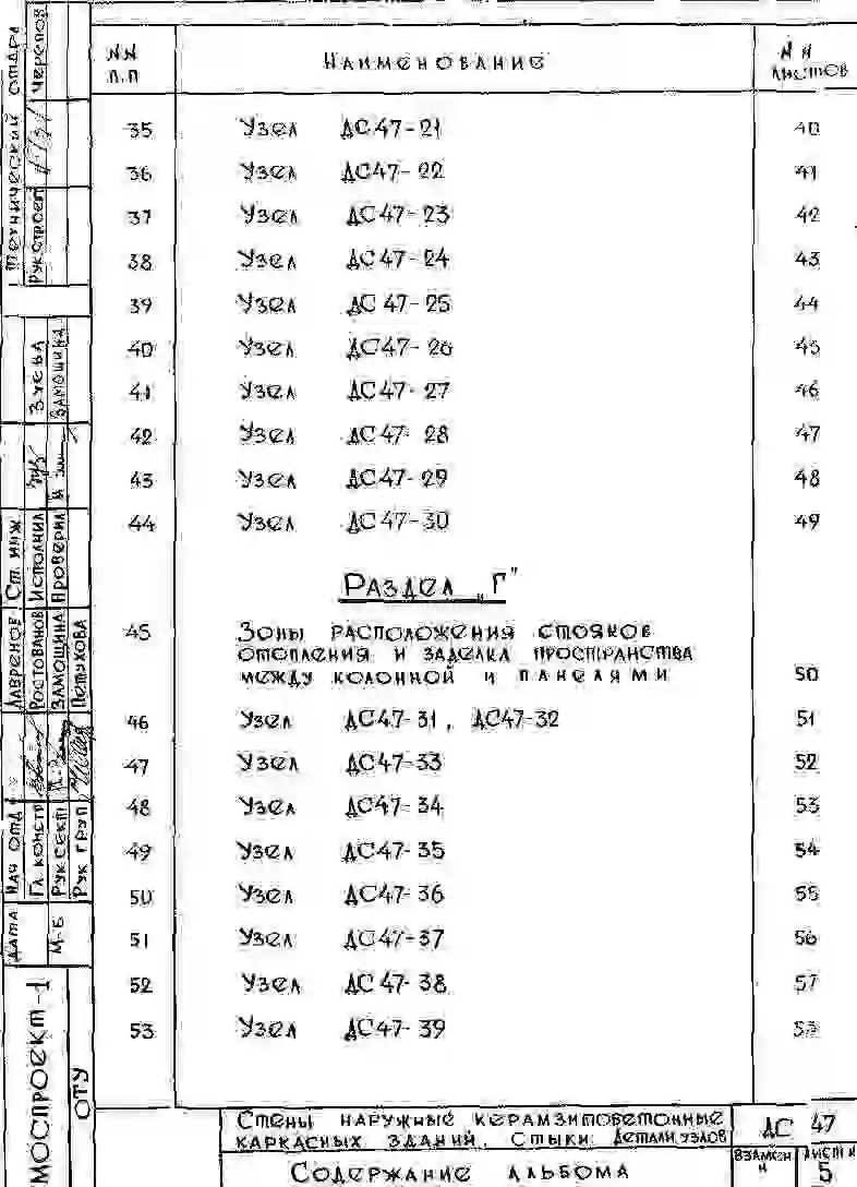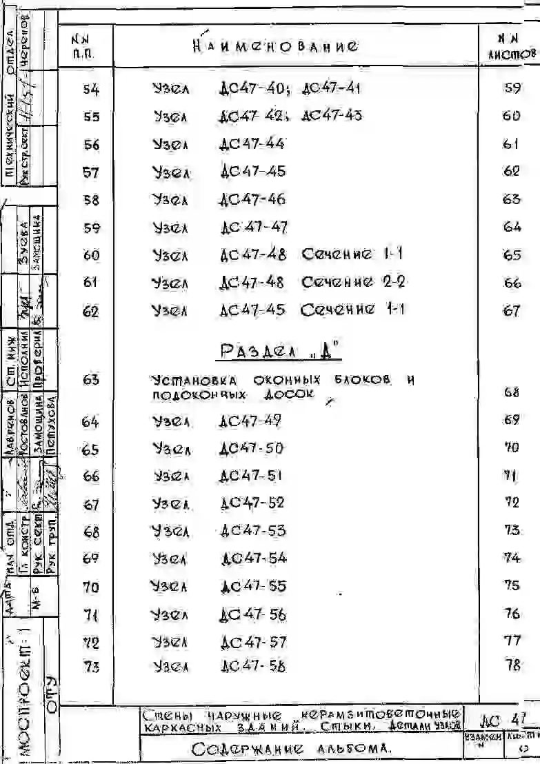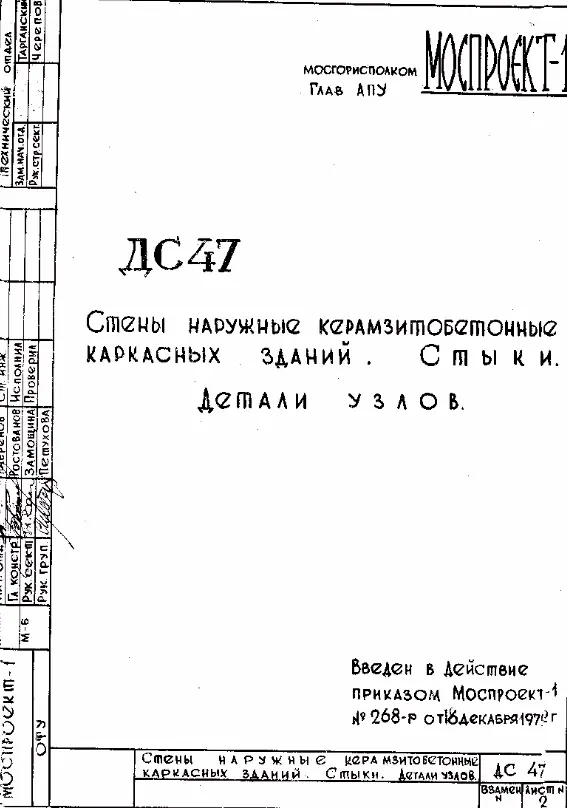 Шифр ДС 47 Стены наружные керамзитобетонные каркасных зданий. Стыки. Детали узлов (1972 г.)