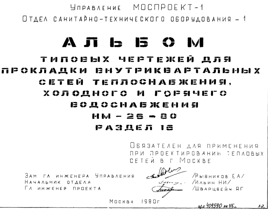 Шифр НМ-26-80 Прокладка внутриквартальных сетей теплоснабжения, холодного и горячего водоснабжения (1980 г.)