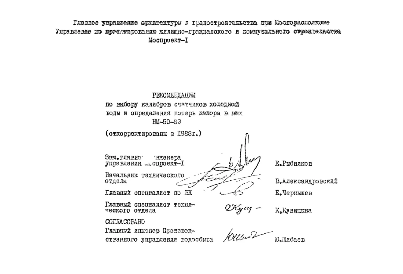 Шифр НМ-50-83 Рекомендации по выбору калибров счетчиков холодной воды и определения потерь напора в них (1988 г.)