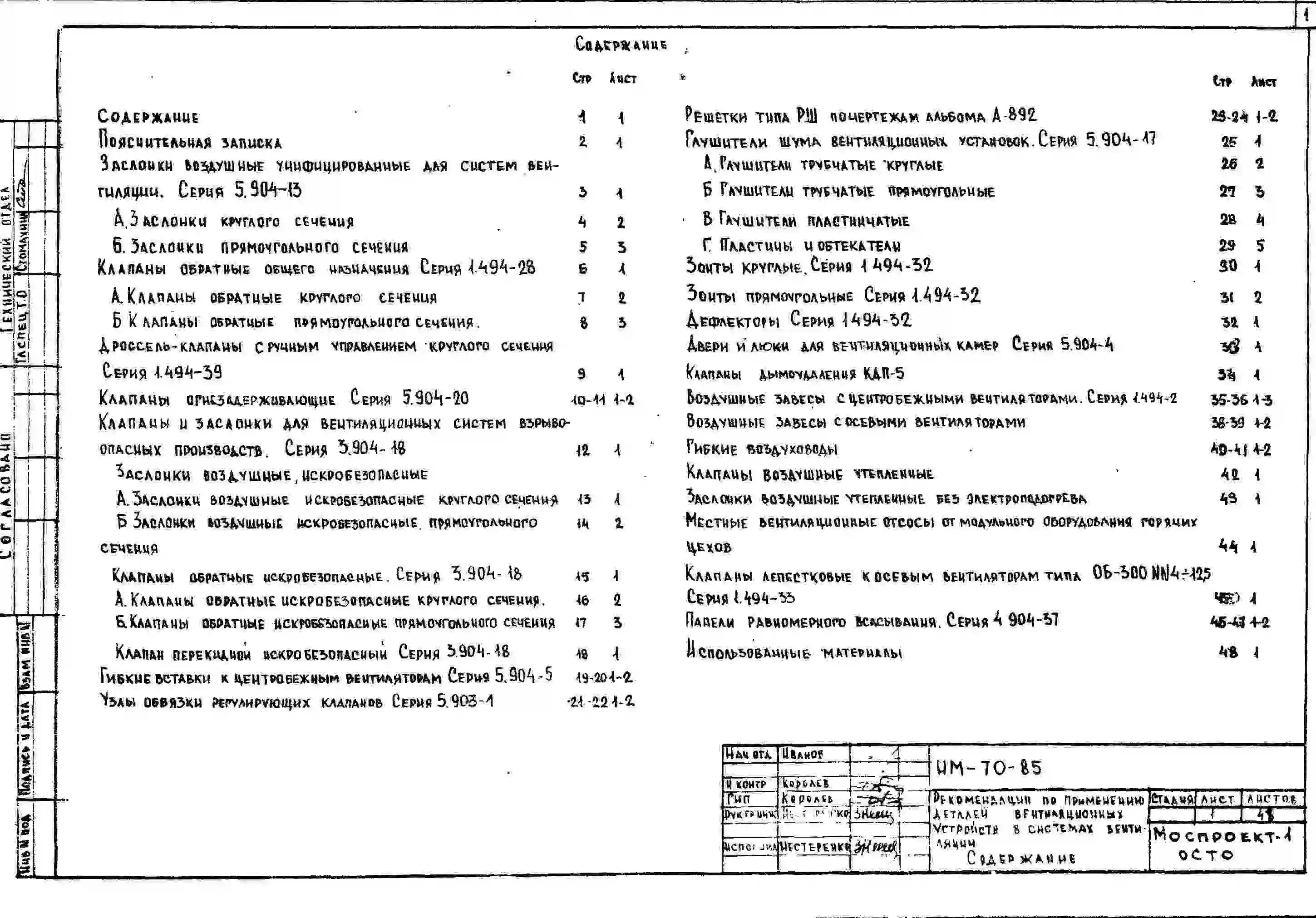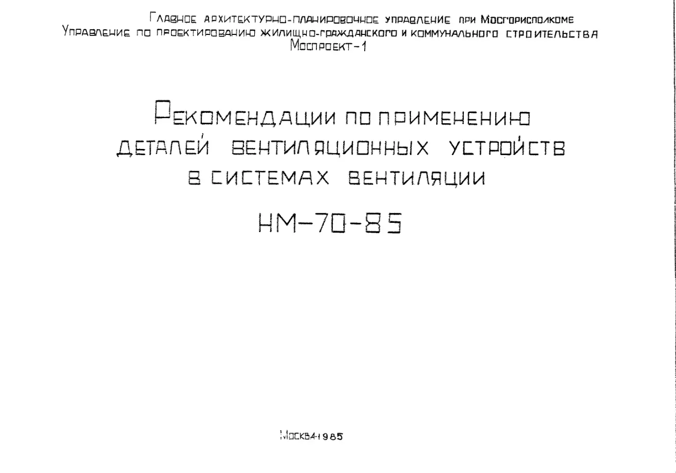 Шифр НМ-70-85 Рекомендации по применению деталей вентиляционных устройств в системах вентиляции (1985 г.)