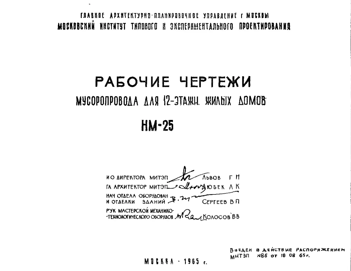 Шифр НМ-25 Мусоропровод для 12-ти этажных жилых домов (1965 г.)