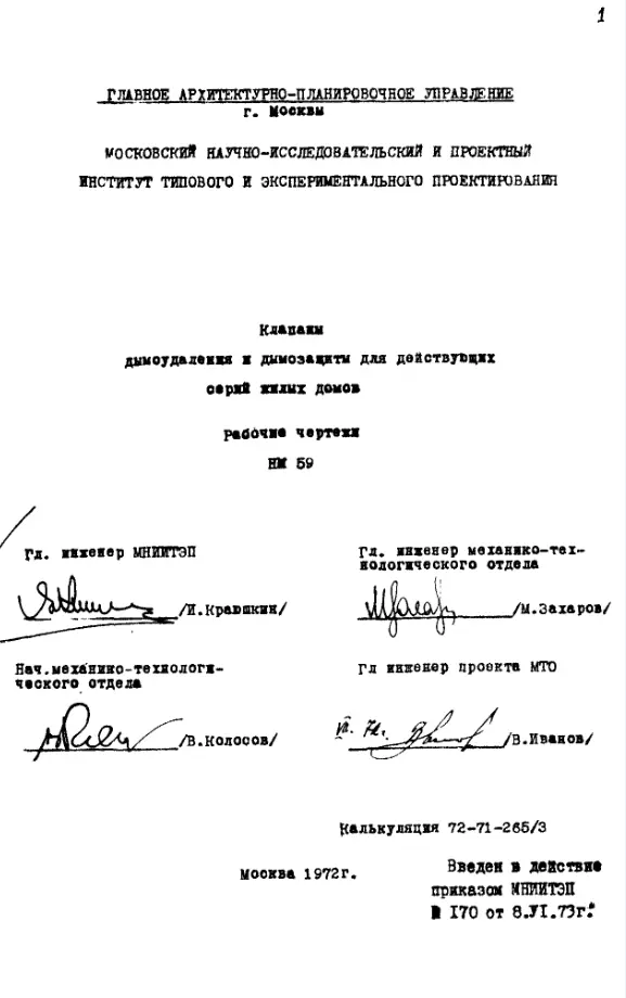 Шифр НМ 59 Клапаны дымоудаления и дымозащиты для действующих серий жилых домов (1972 г.)