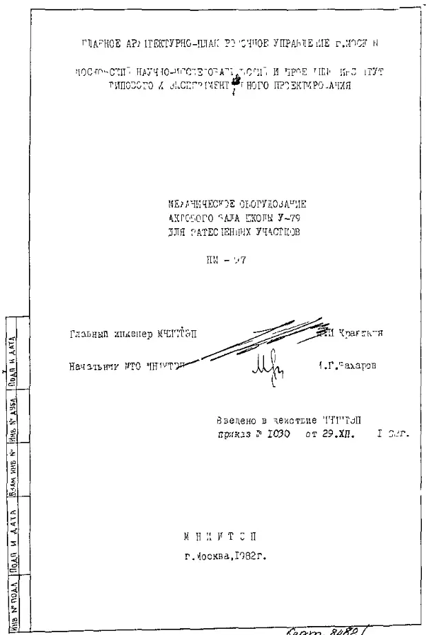 Шифр НМ-97 Механическое оборудование актового зала школы V-79 для ратесненных участков (1982 г.)