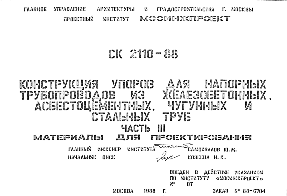 Шифр СК2110-88 Конструкция упоров для напорных трубопроводов из железобетонных, асбестоцементных, чугунных и стальных труб (1988 г.)