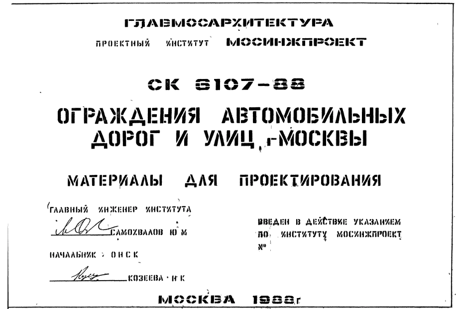Шифр СК6107-88 Ограждения автомобильных дорог и улиц г.Москвы (1988 г.)