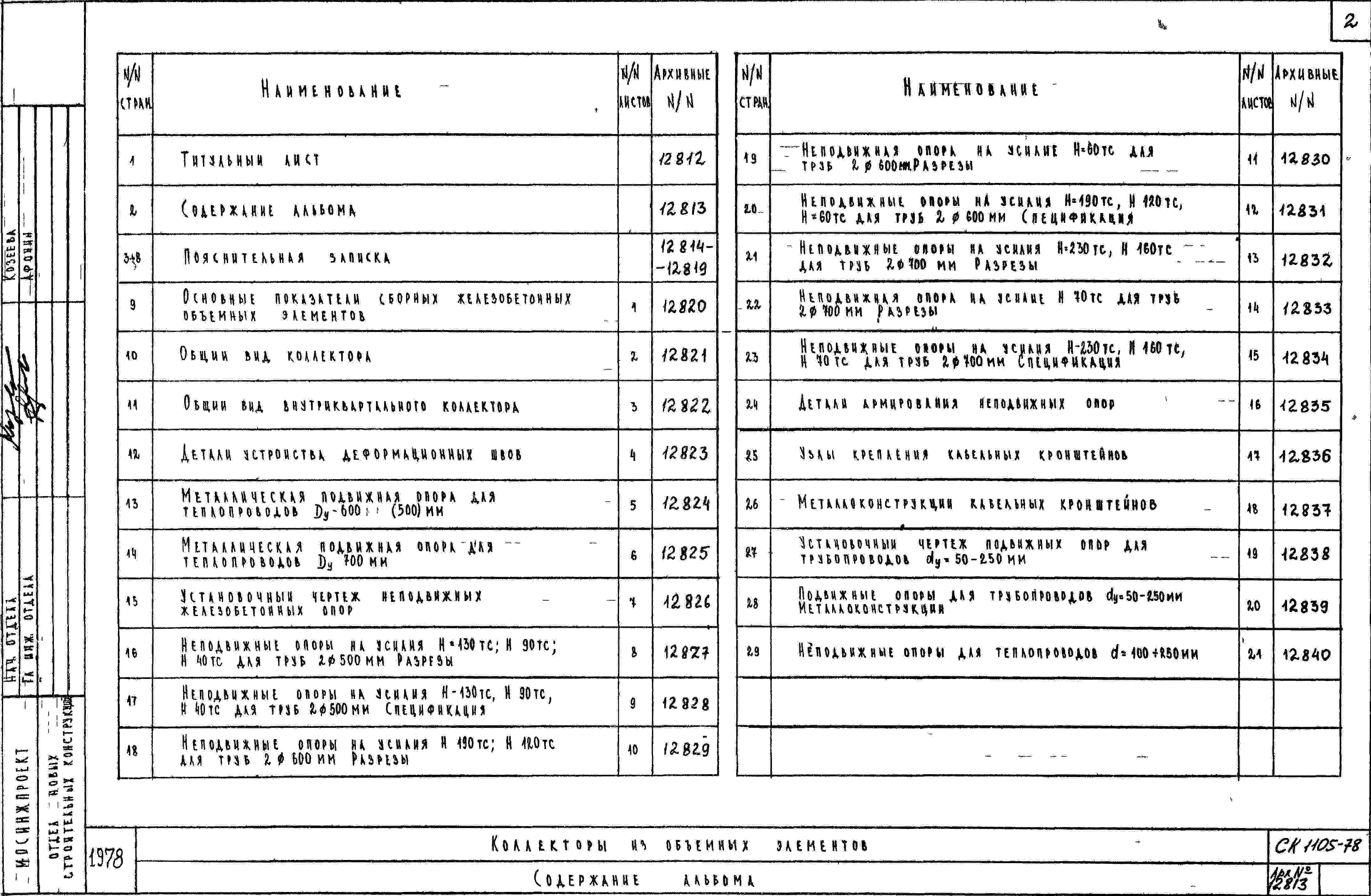 Шифр СК1105-78 Коллекторы из объемных элементов сечением 2,5 м х2,5 м (1978 г.)