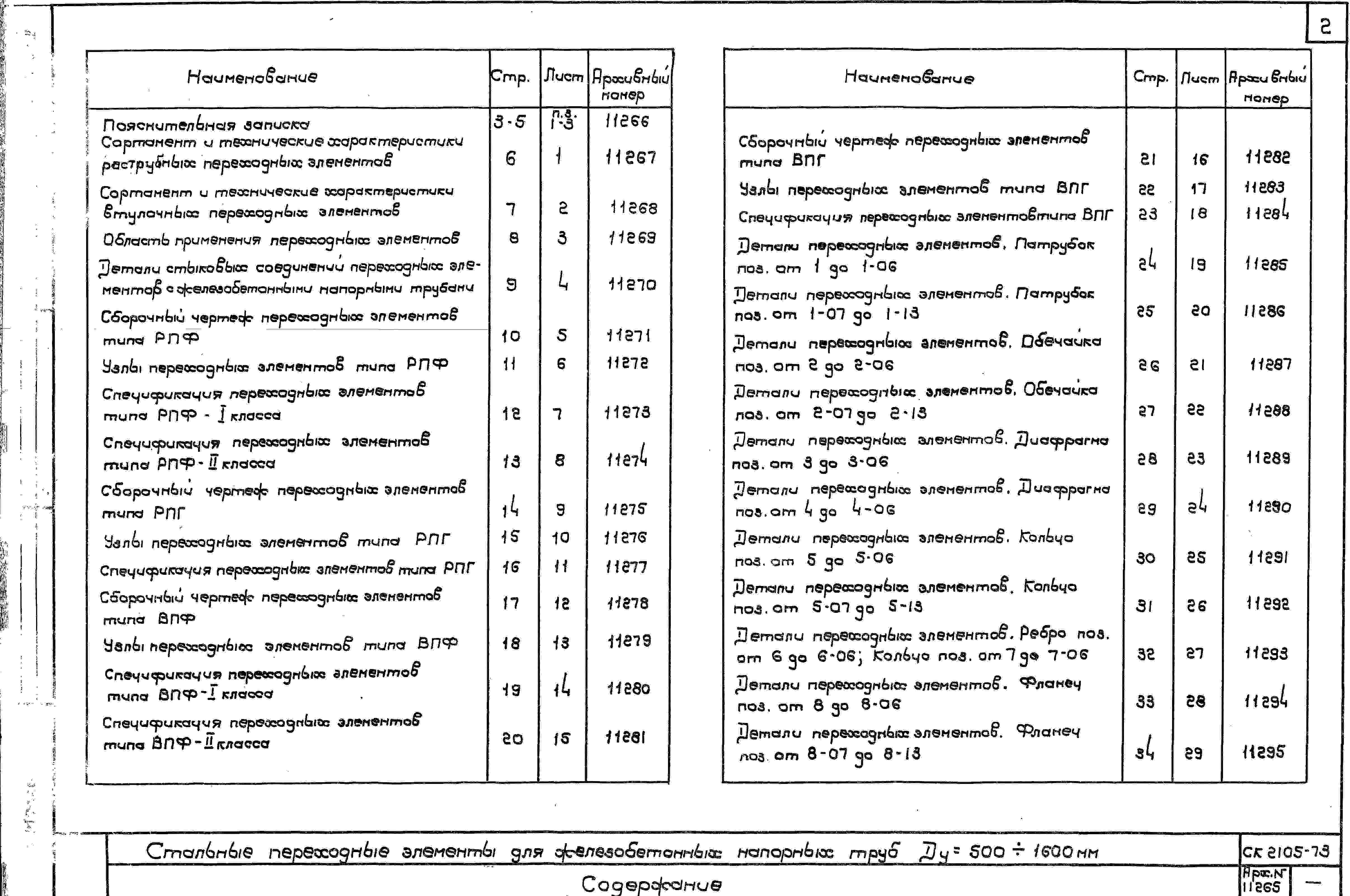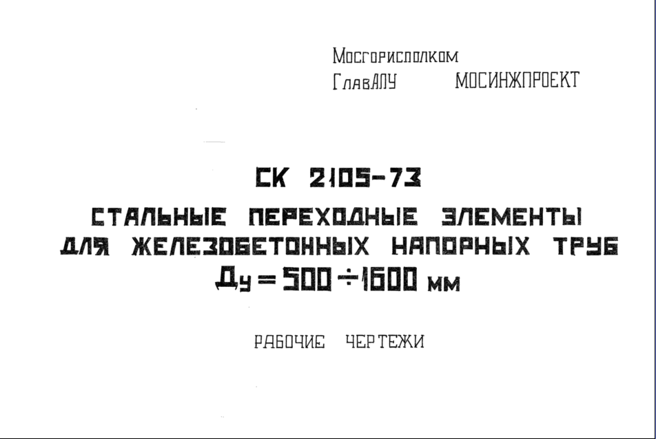 Шифр СК2105-73 Стальные переходные элементы для железобетонных напорных труб Ду = 500-1600 мм (1973 г.)