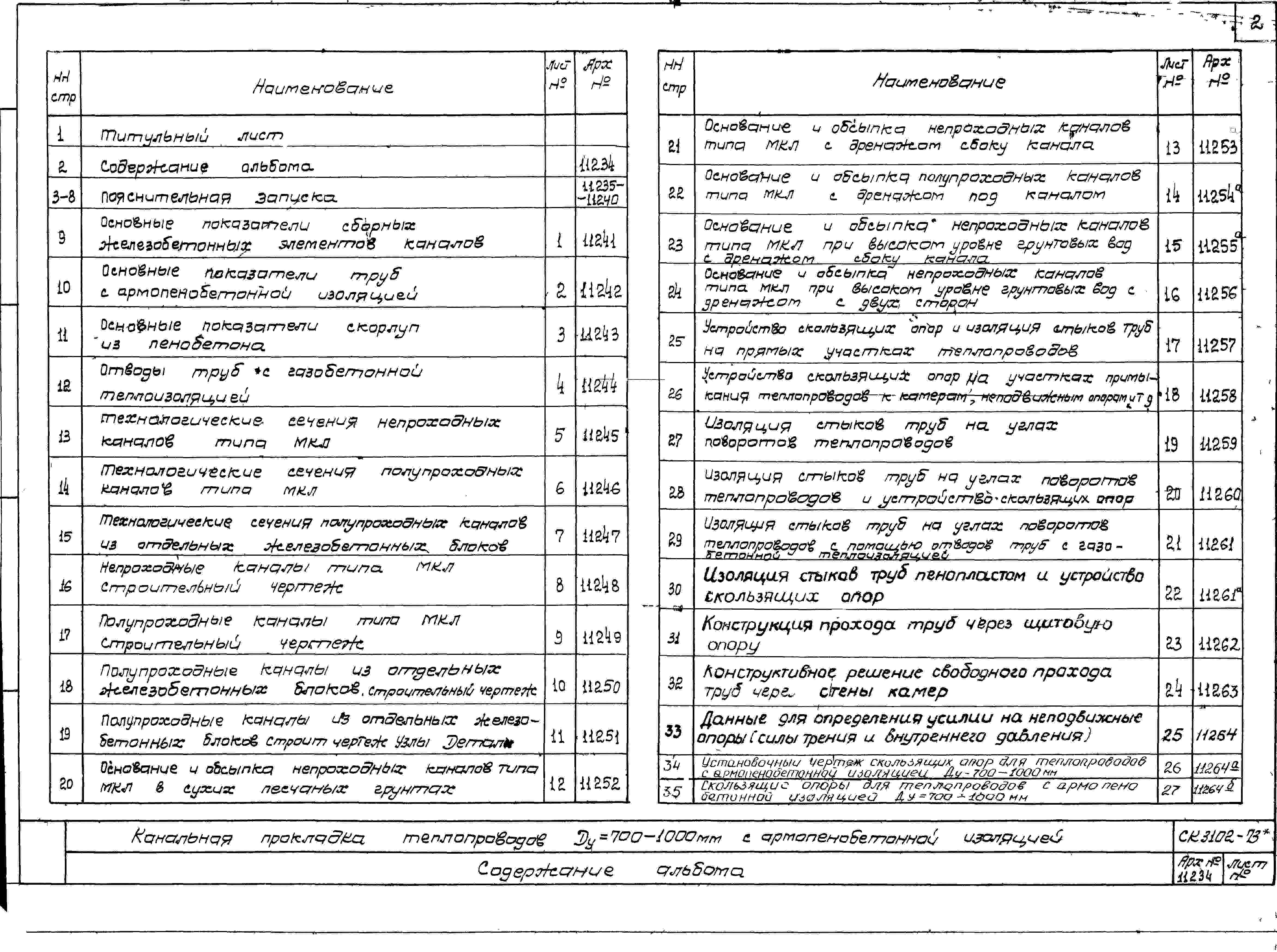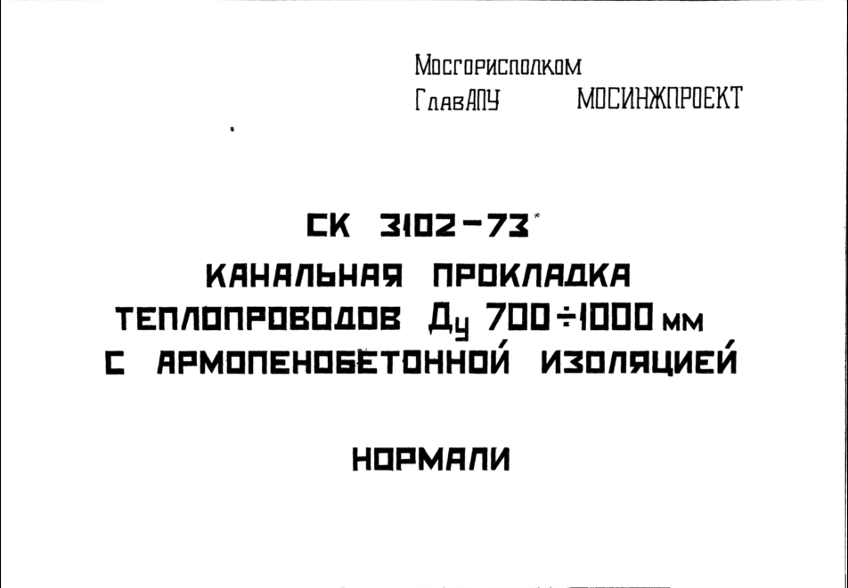 Шифр СК3102-73 Канальная прокладка теплопроводов Ду 700?1000 мм с армопенобетонной изоляцией. Нормали (1973 г.)