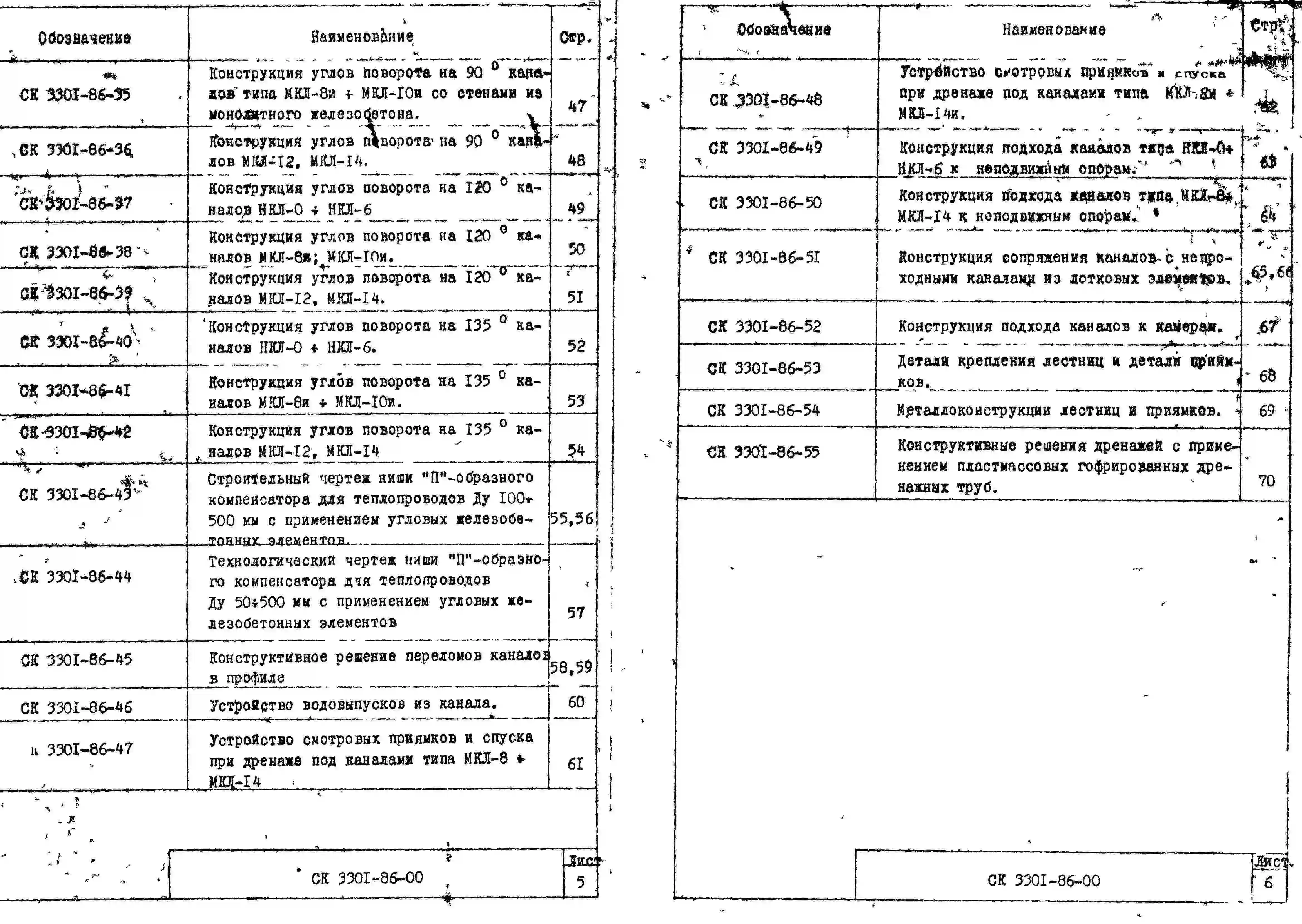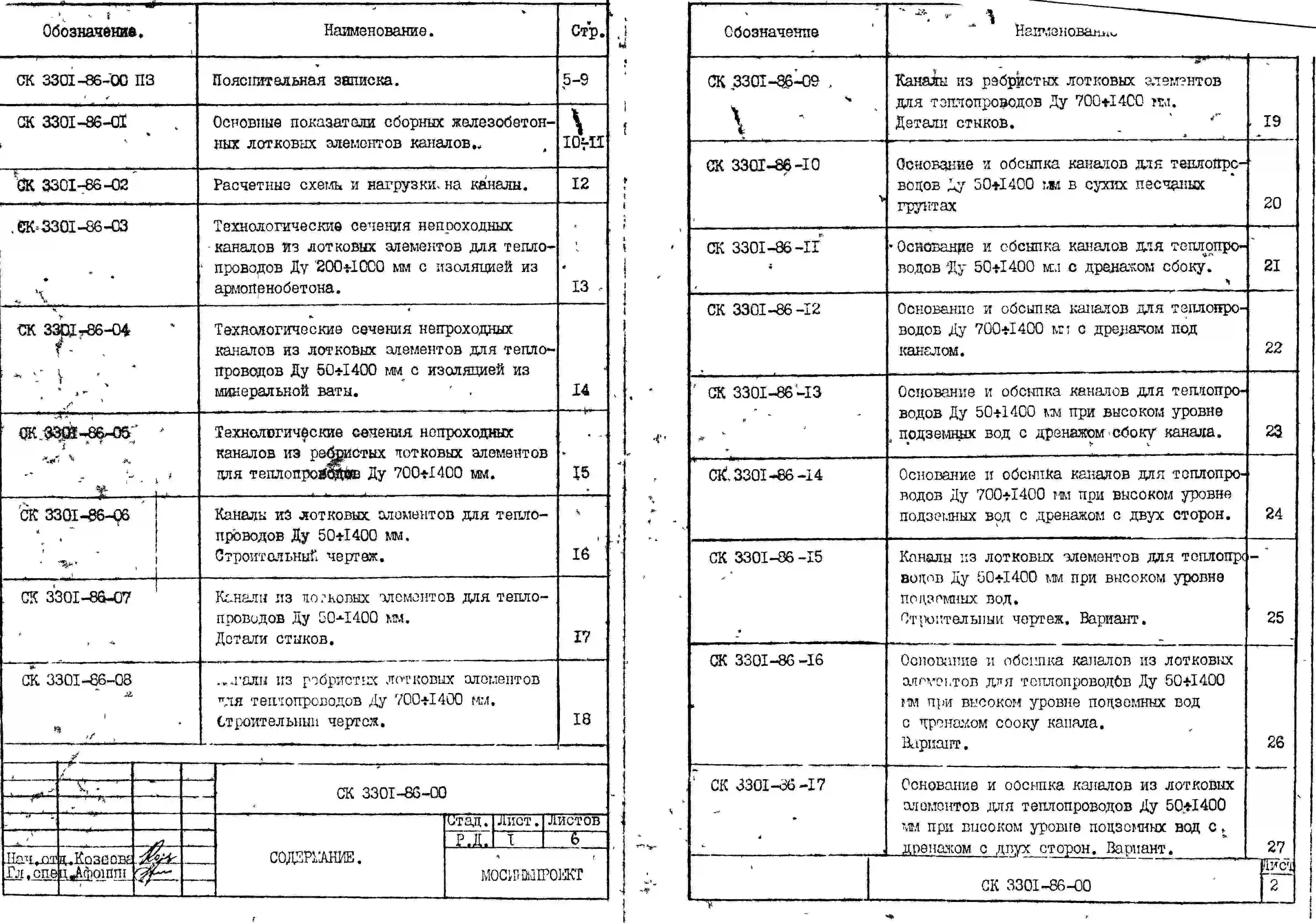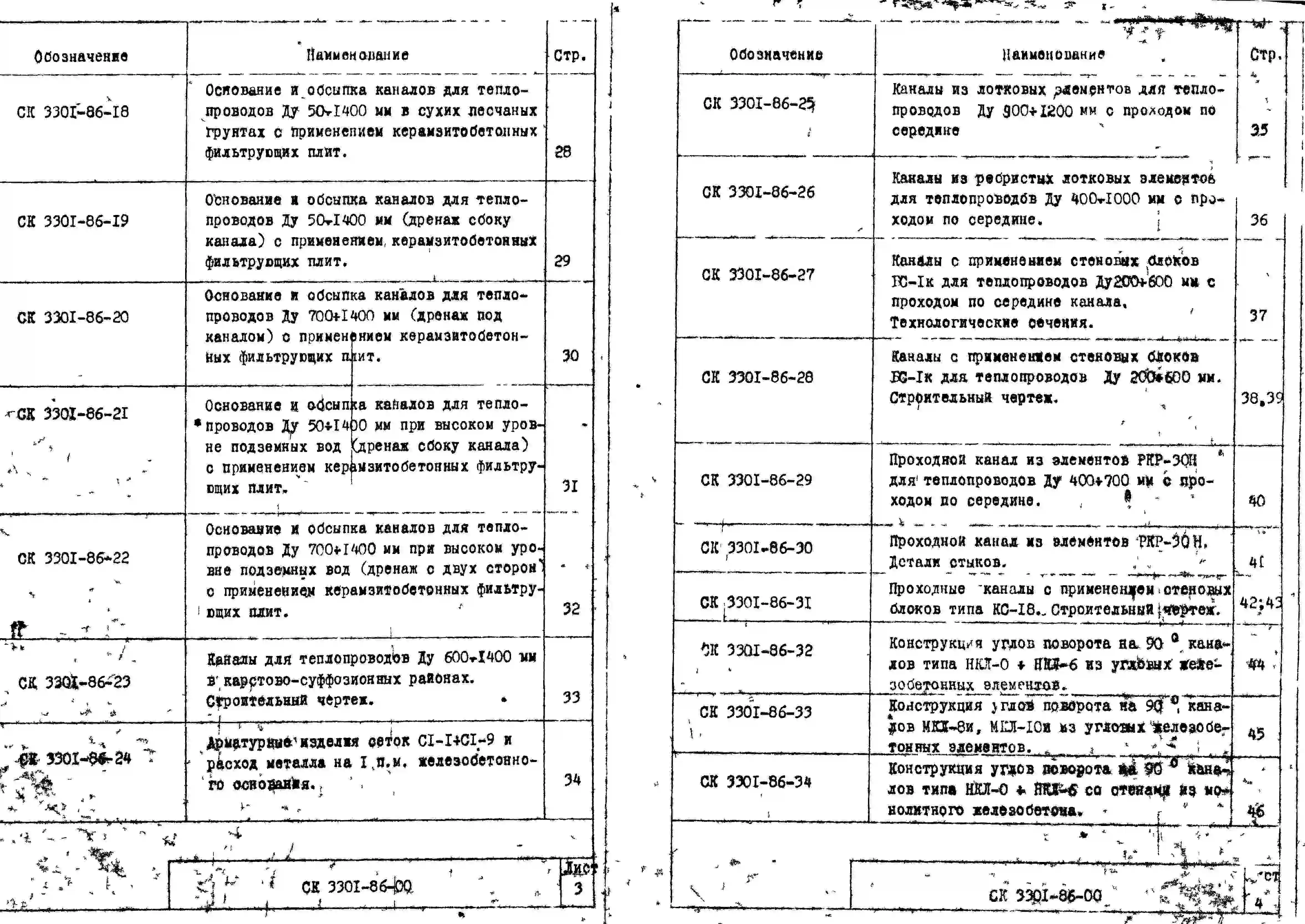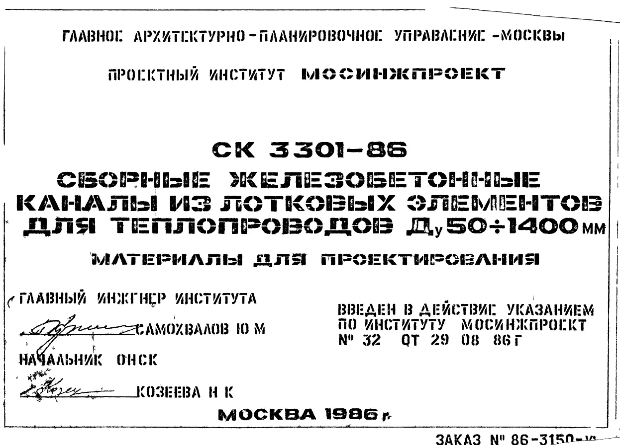 Шифр СК 3301-86 Сборные железобетонные каналы из лотковых элементов для теплопроводов Ду 50-1400 мм. Материалы для проектирования. (1986 г.)