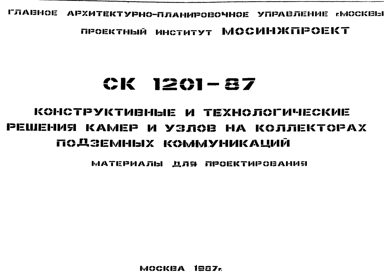 Шифр СК 1201-87 Конструктивные и технологические решения камер и узлов на коллекторах подземных коммуникаций (1987 г.)