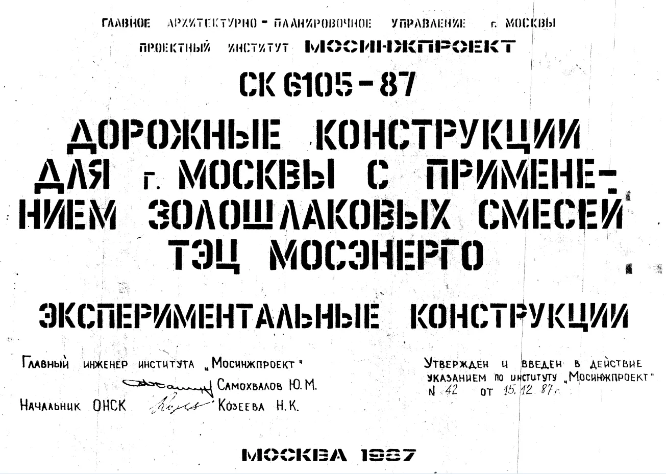 Шифр СК 6105-87 Дорожные конструкции для г.Москвы с применением золошлаковых смесей ТЭЦ Мосэнерго (1987 г.)
