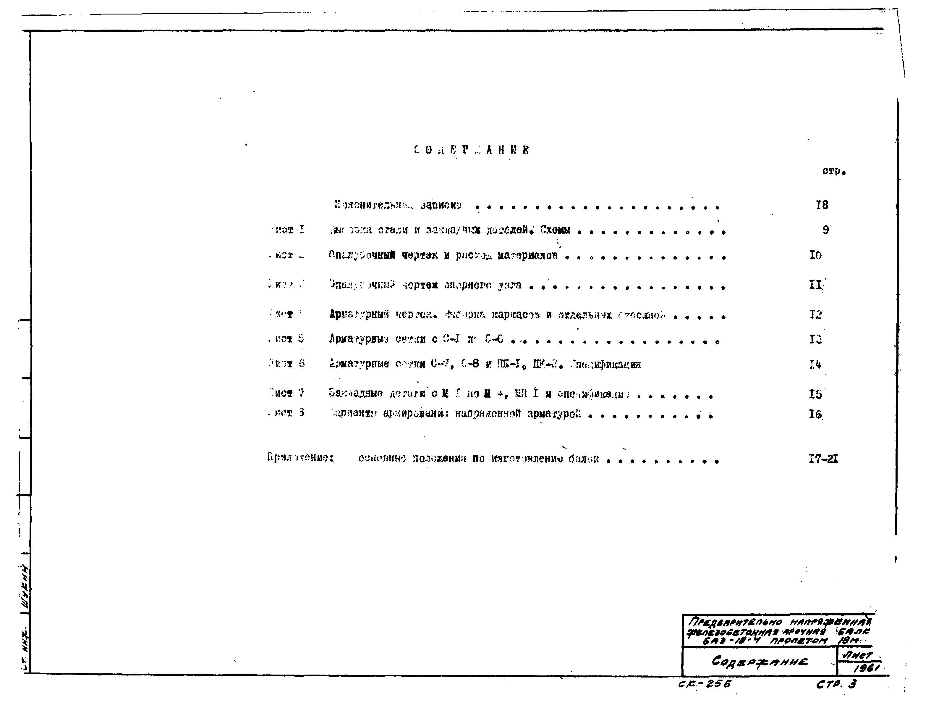 Шифр СК-25Б Железобетонная сборная предварительно напряженная балка БАЭ-18-4 пролетом 18 м для покрытий промзданий, армированная стержневой арматурой с предварительным натяжением электротермическим методом (1961 г.)