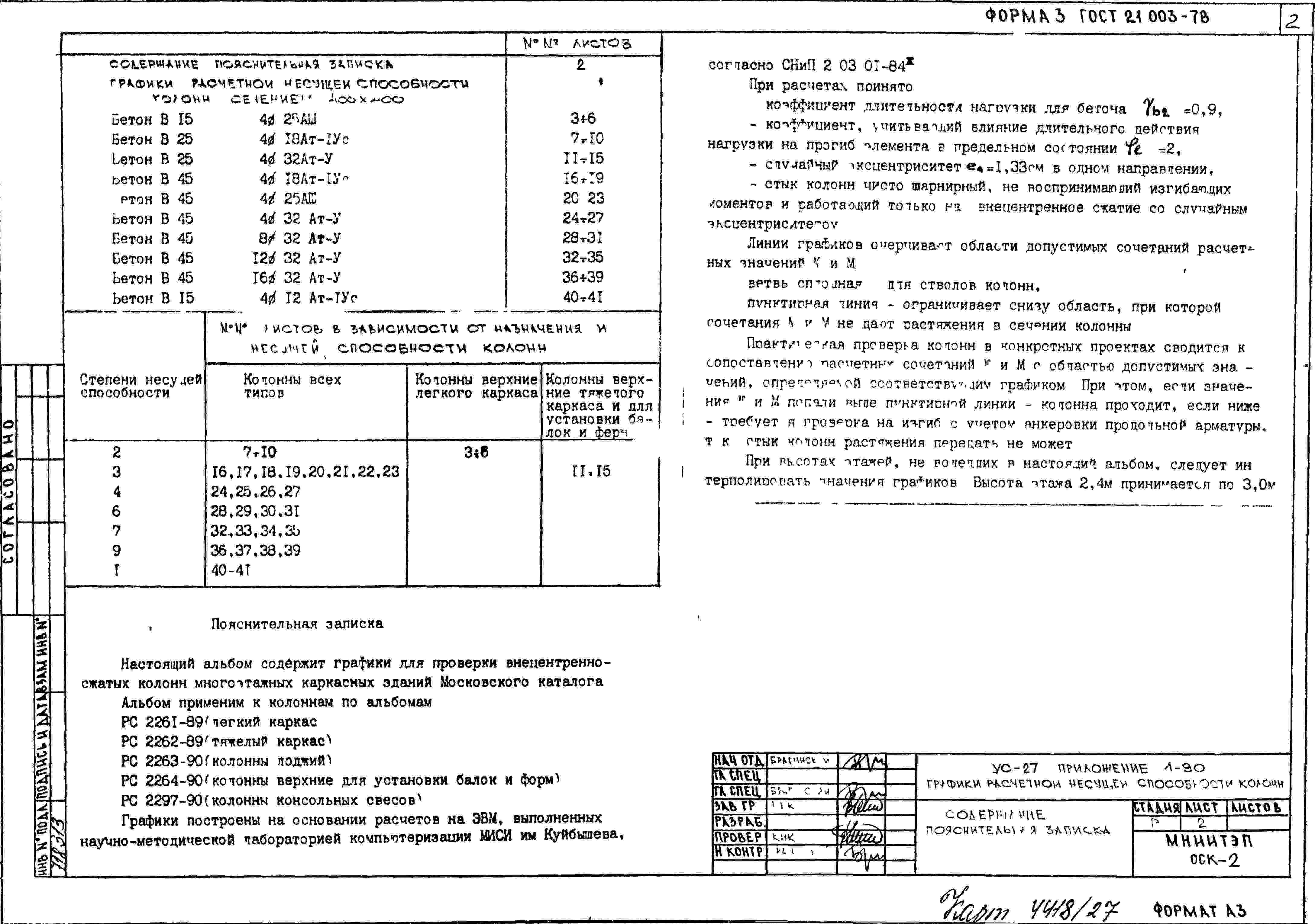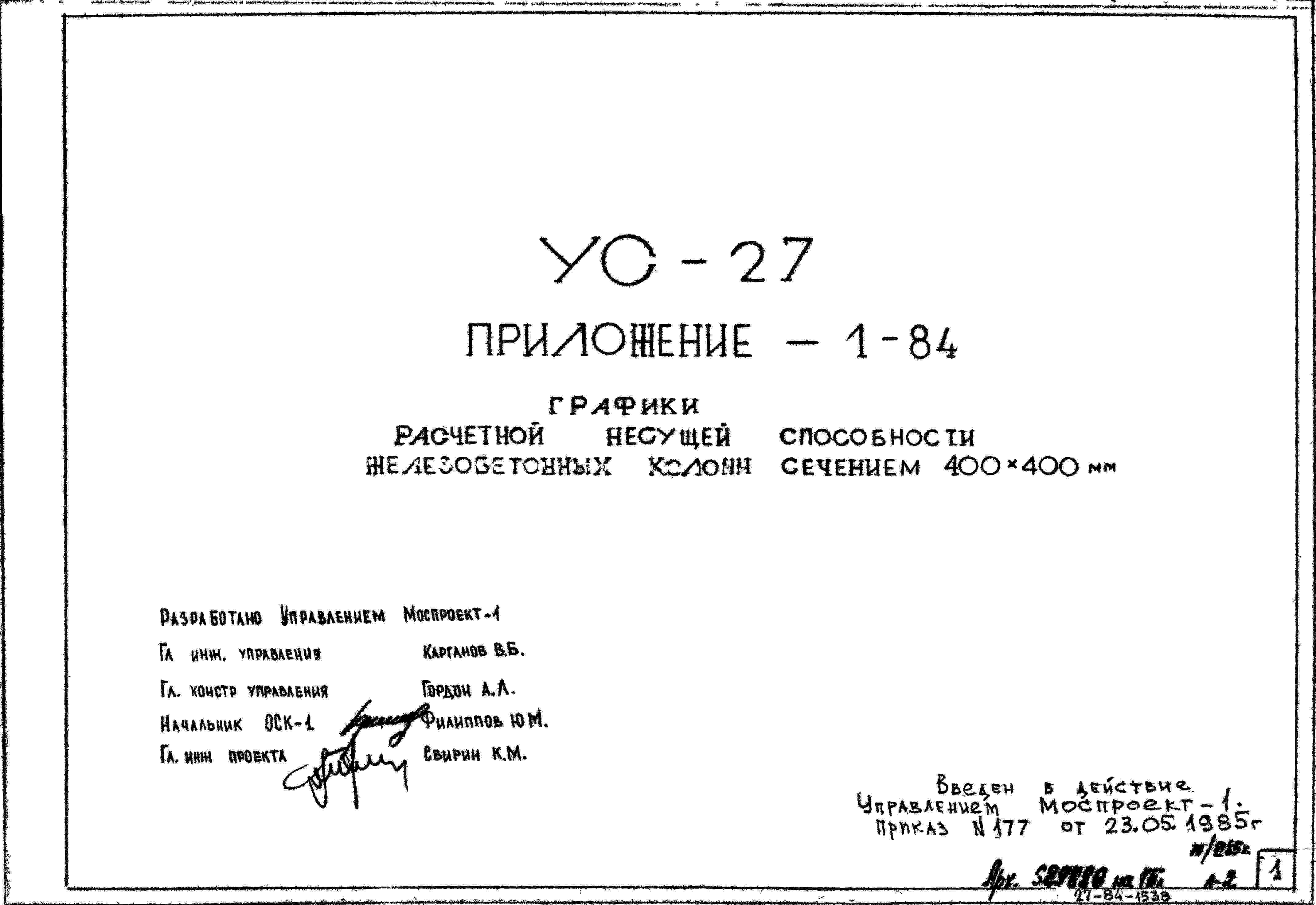 Шифр УС-27 Графики расчетной несущей способности железобетонных колонн сечением 400х400 мм
