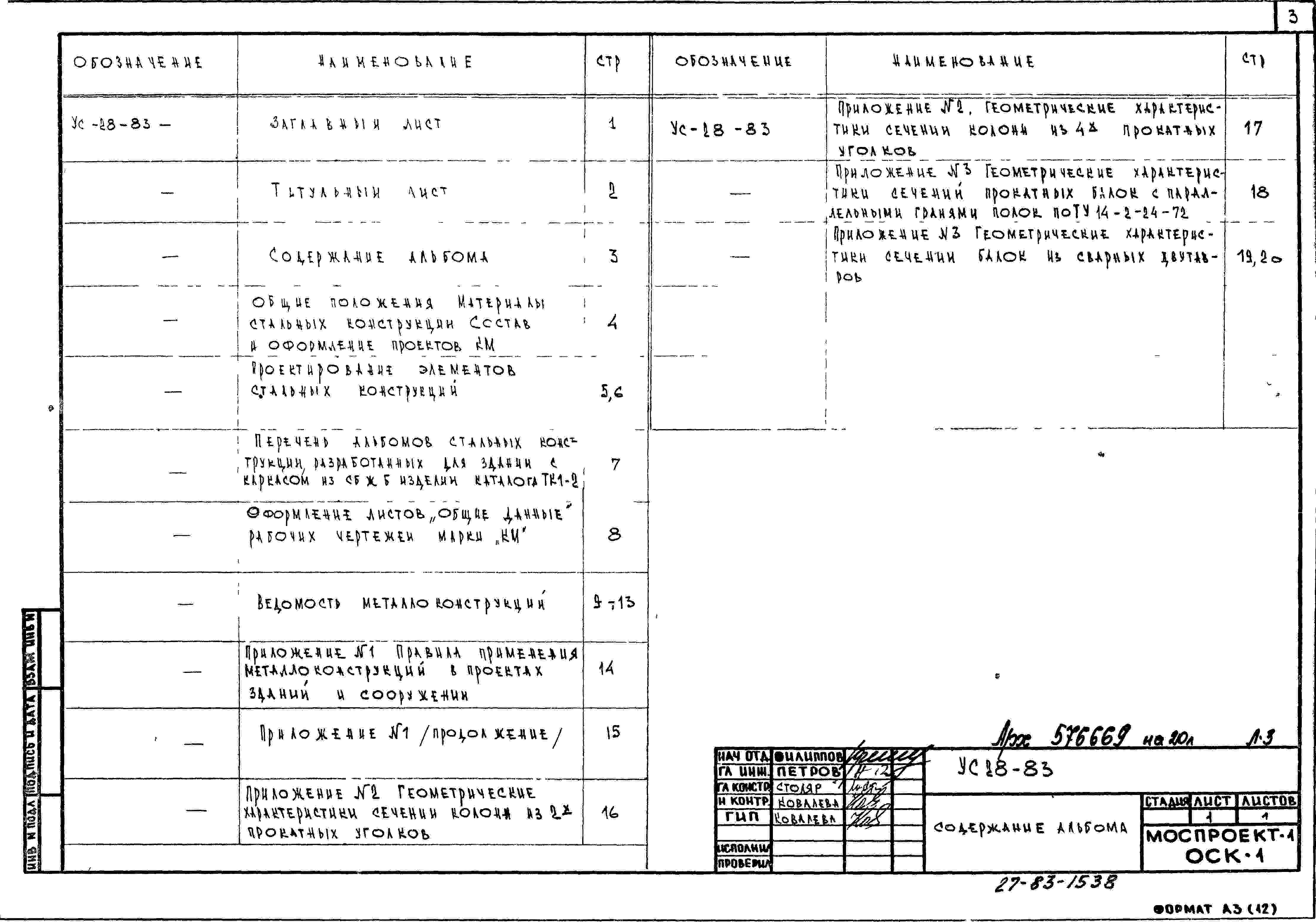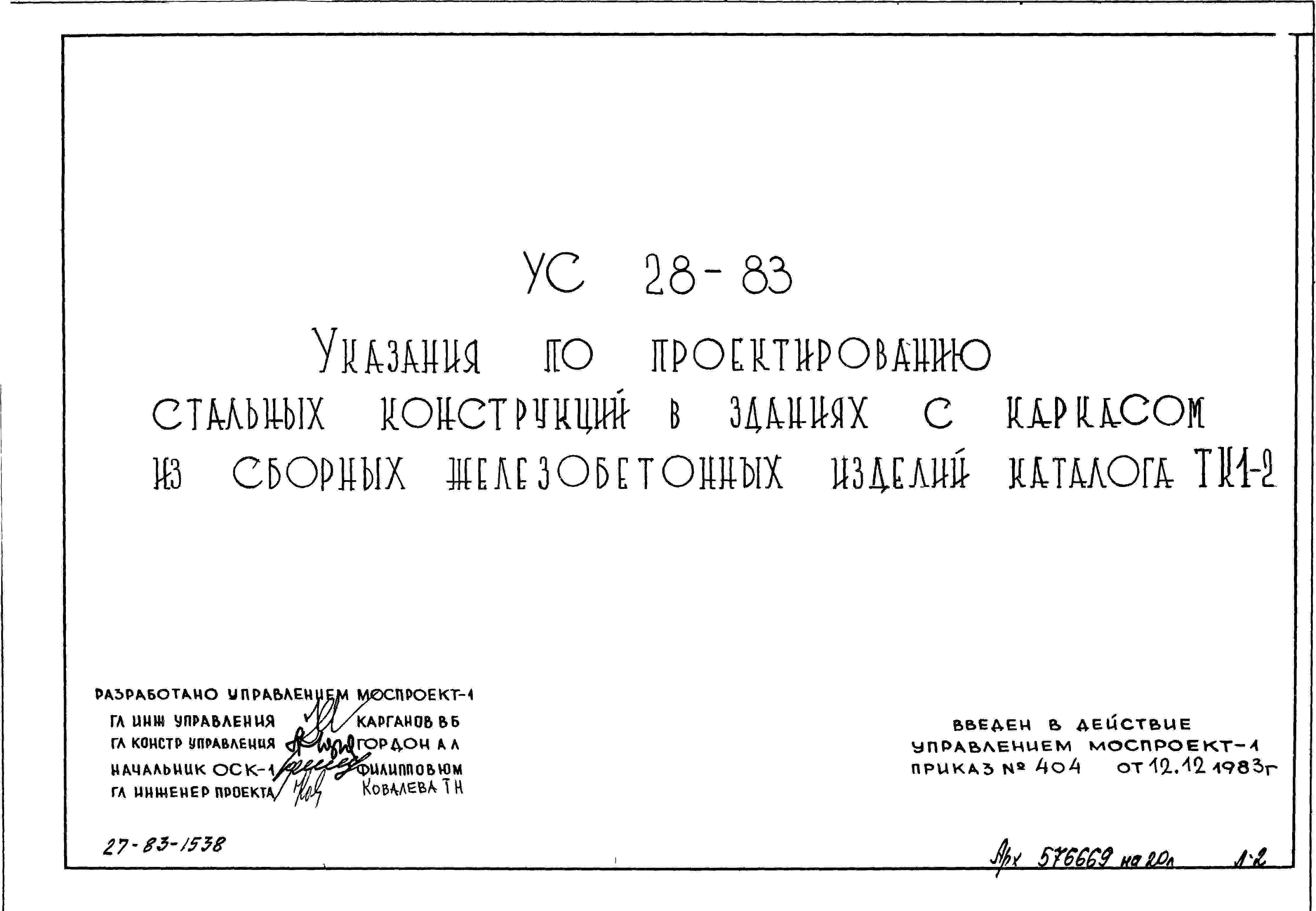 Шифр УС28-83 Указания по проектированию стальных конструкций в зданиях с каркасом из сборных железобетонных изделий каталога ТК1-2 (1983 г.)