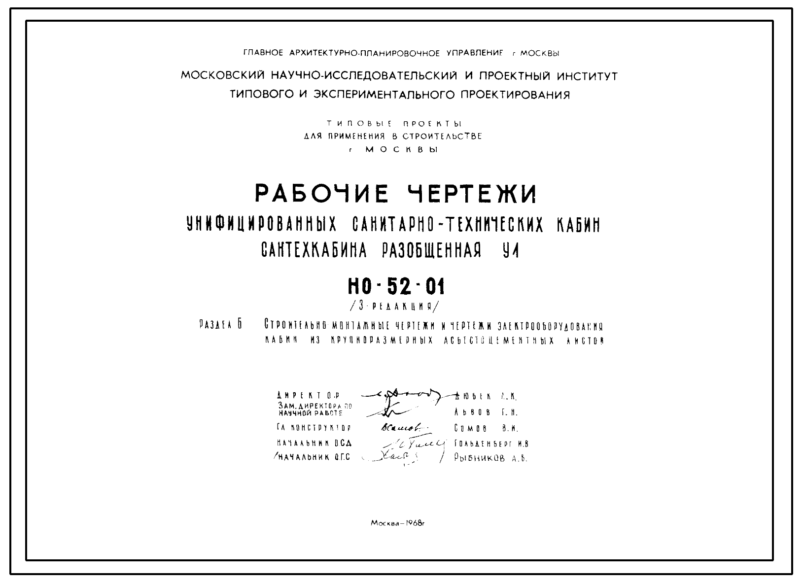 Шифр НО-52-01 Унифицированные санитарно-технические кабины. Сантехкабина разобщенная У1 . Редакция 3. (1968 г.)
