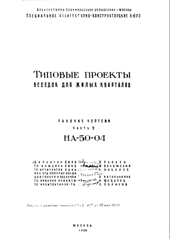 Шифр НА-50-04 Беседки для жилых кварталов (1958 г.)