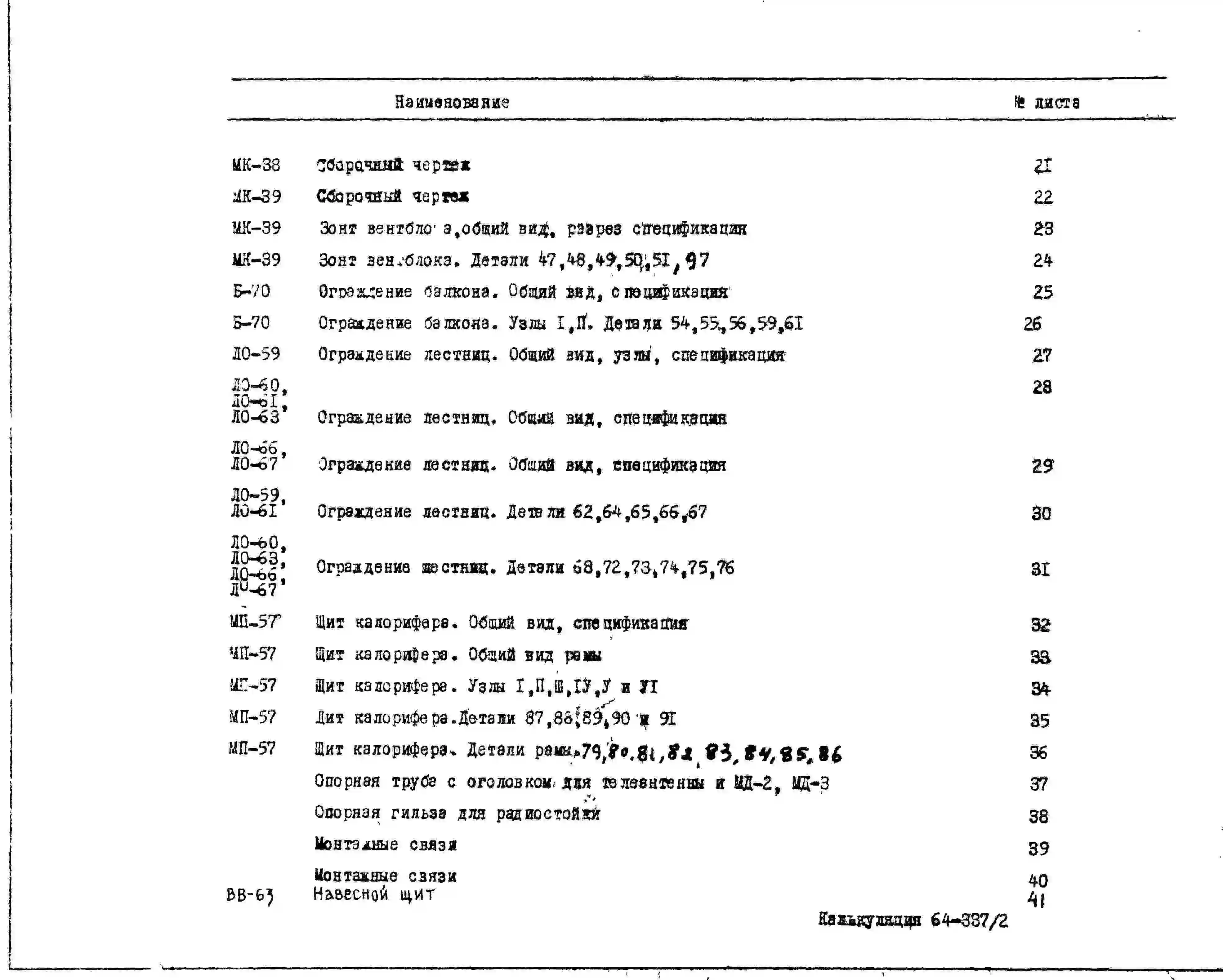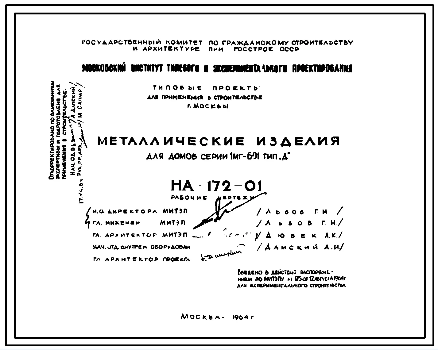 Шифр НА-172-01 Металлические изделия для домов серии 1МГ-601 (1964 г.)