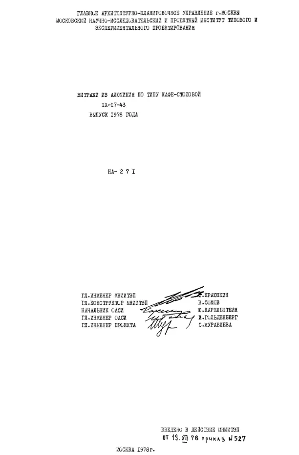 Шифр НА-271 Витражи из алюминия по типу кафе-столовой (1978 г.)
