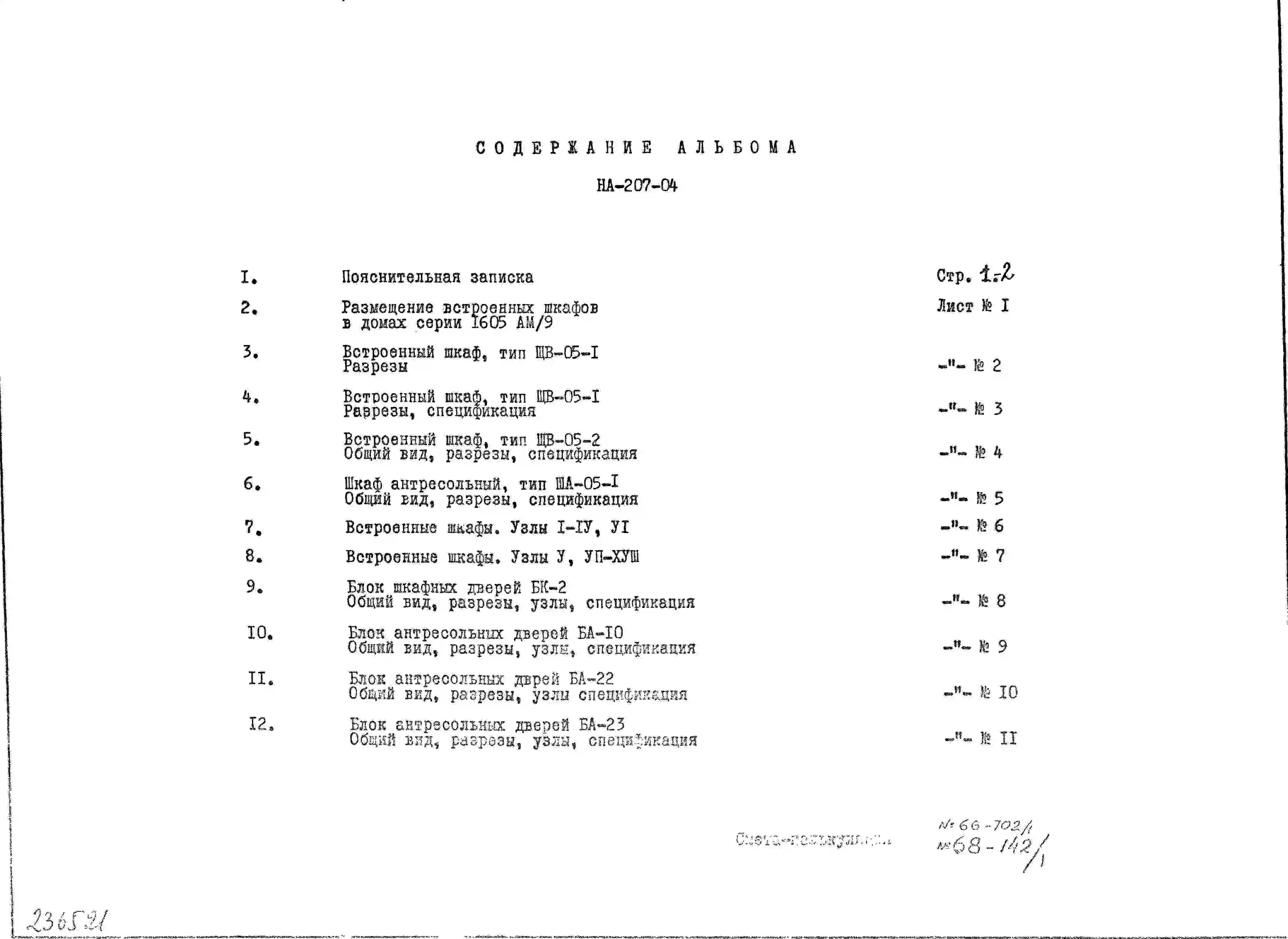 Шифр НА-207-04 Унифицированное встроенное оборудование квартир (1966 г.)