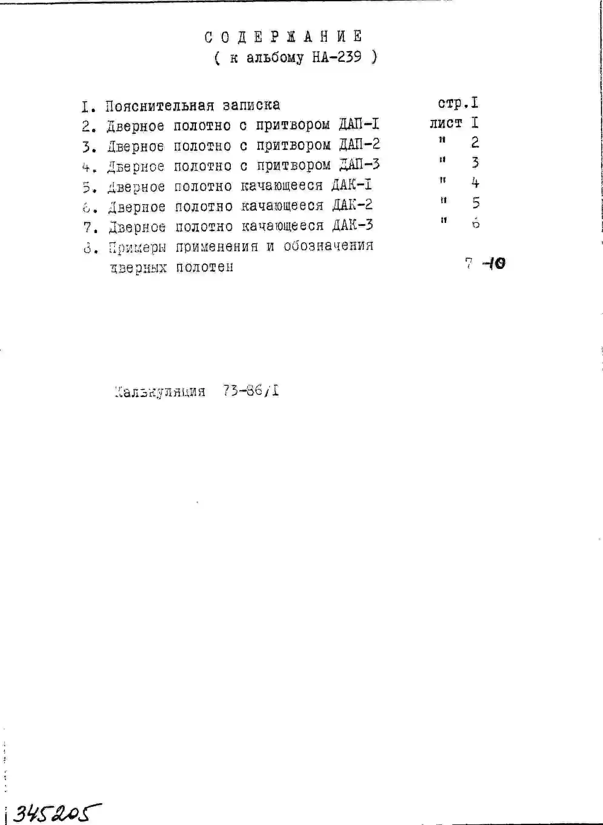 Шифр НА-239 Номенклатура дверных полотен в алюминиевой обвязке (1973 г.)
