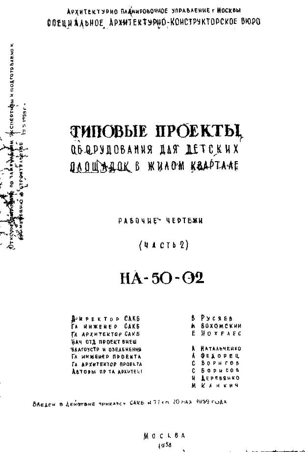 Шифр НА-50-02 Оборудования для детских площадок в жилом квартале (1958 г.)