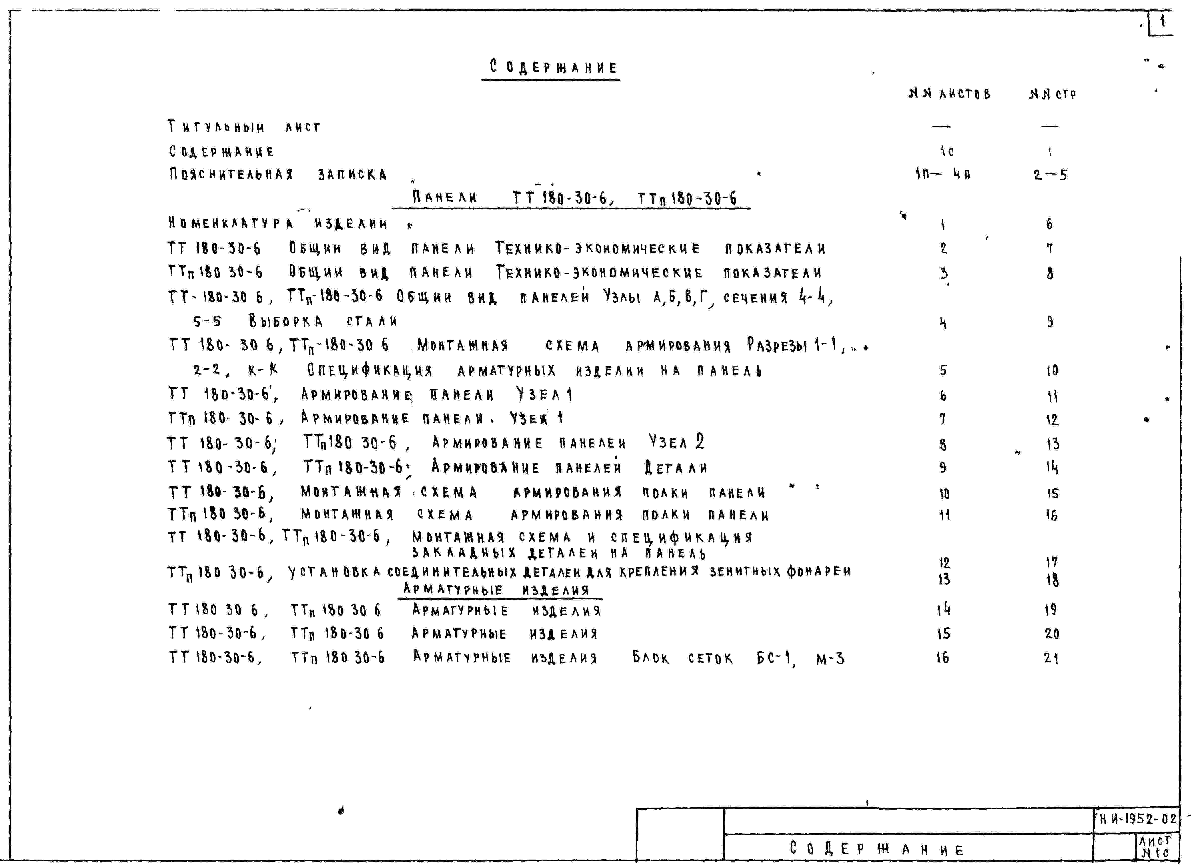 Шифр НИ-1952-02 Сборные железобетонные преднапряженные ребристые панели (типа "ТТ") пролетом 18 м для покрытия общественных и производственных зданий с зенитными фонарями (1978 г.)