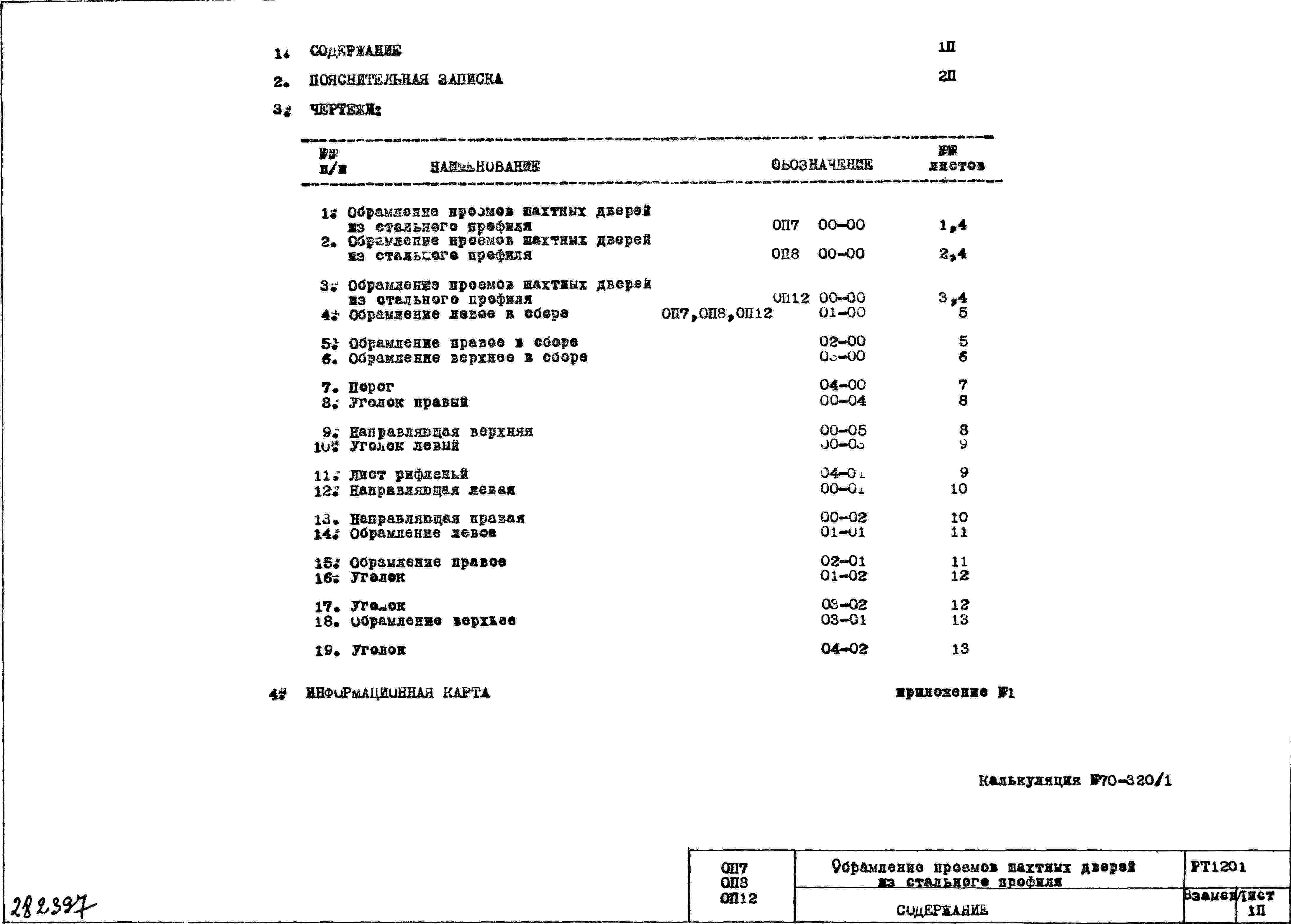 Шифр РТ1201 Обрамление проемов шахтных дверей из стального профиля (1970 г.)