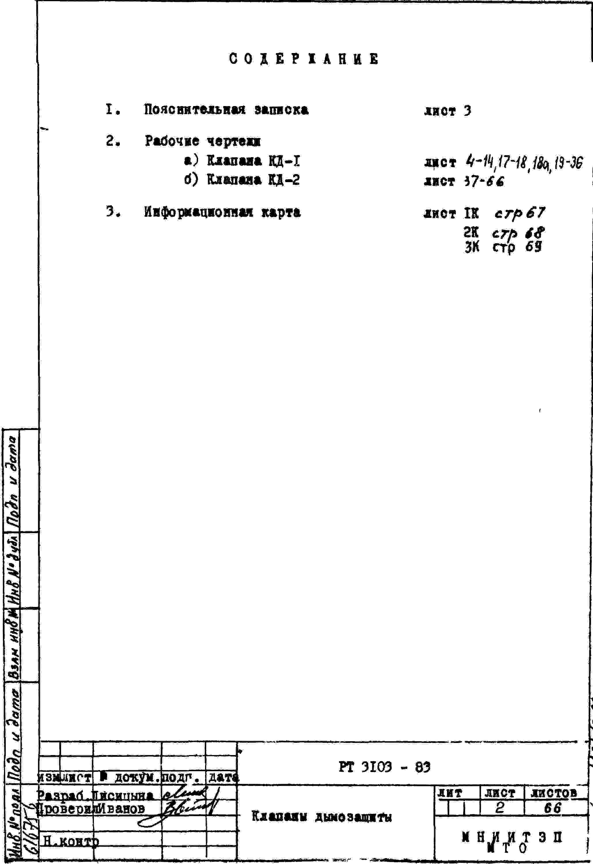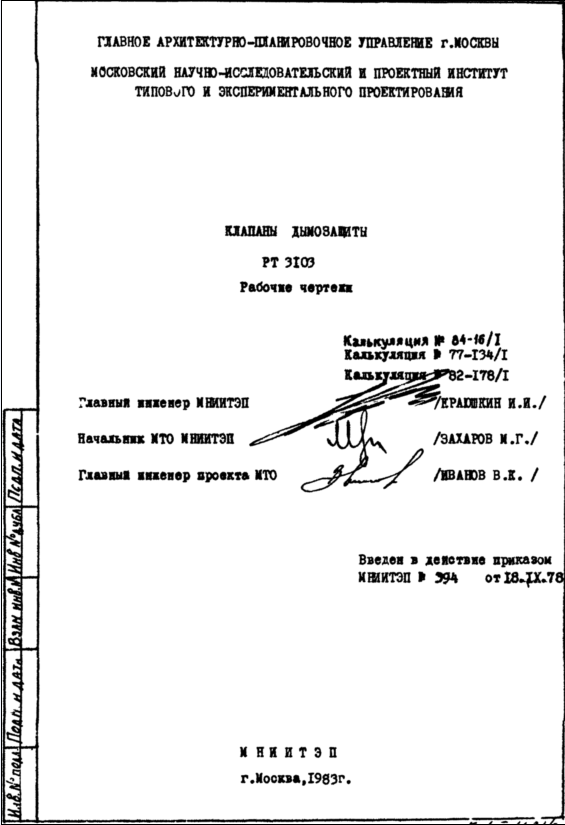 Шифр РТ3103 Клапаны дымозащиты (1983 г.)