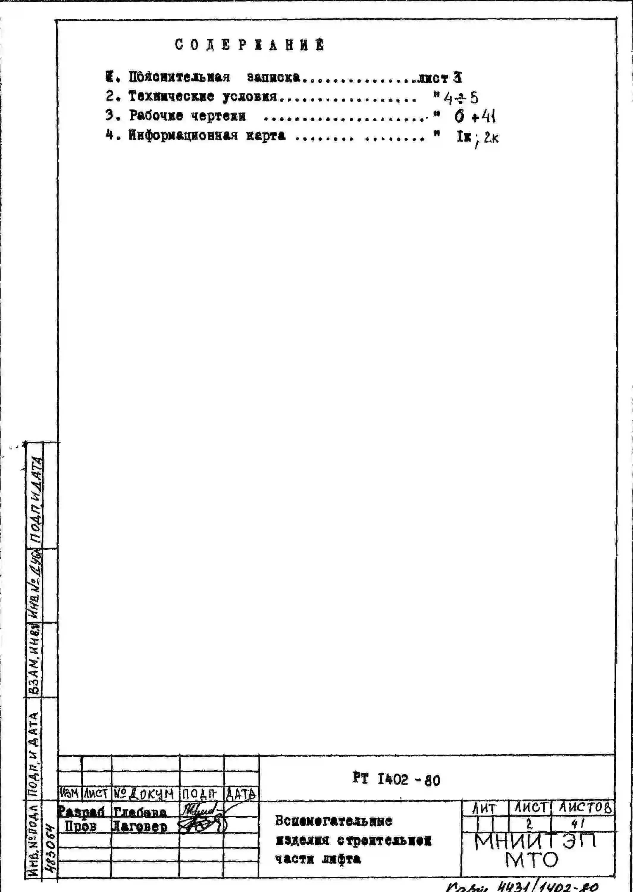 Шифр РТ 1402 Вспомогательные изделия строительной части лифта (1980 г.)