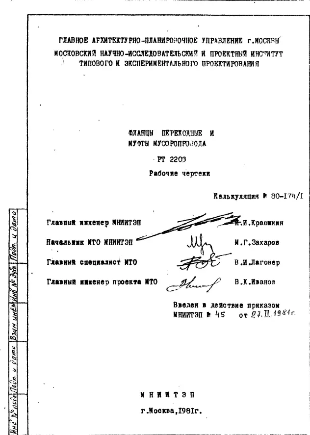 Шифр РТ 2203 Фланцы переходные и муфты мусоропровода (1981 г.)
