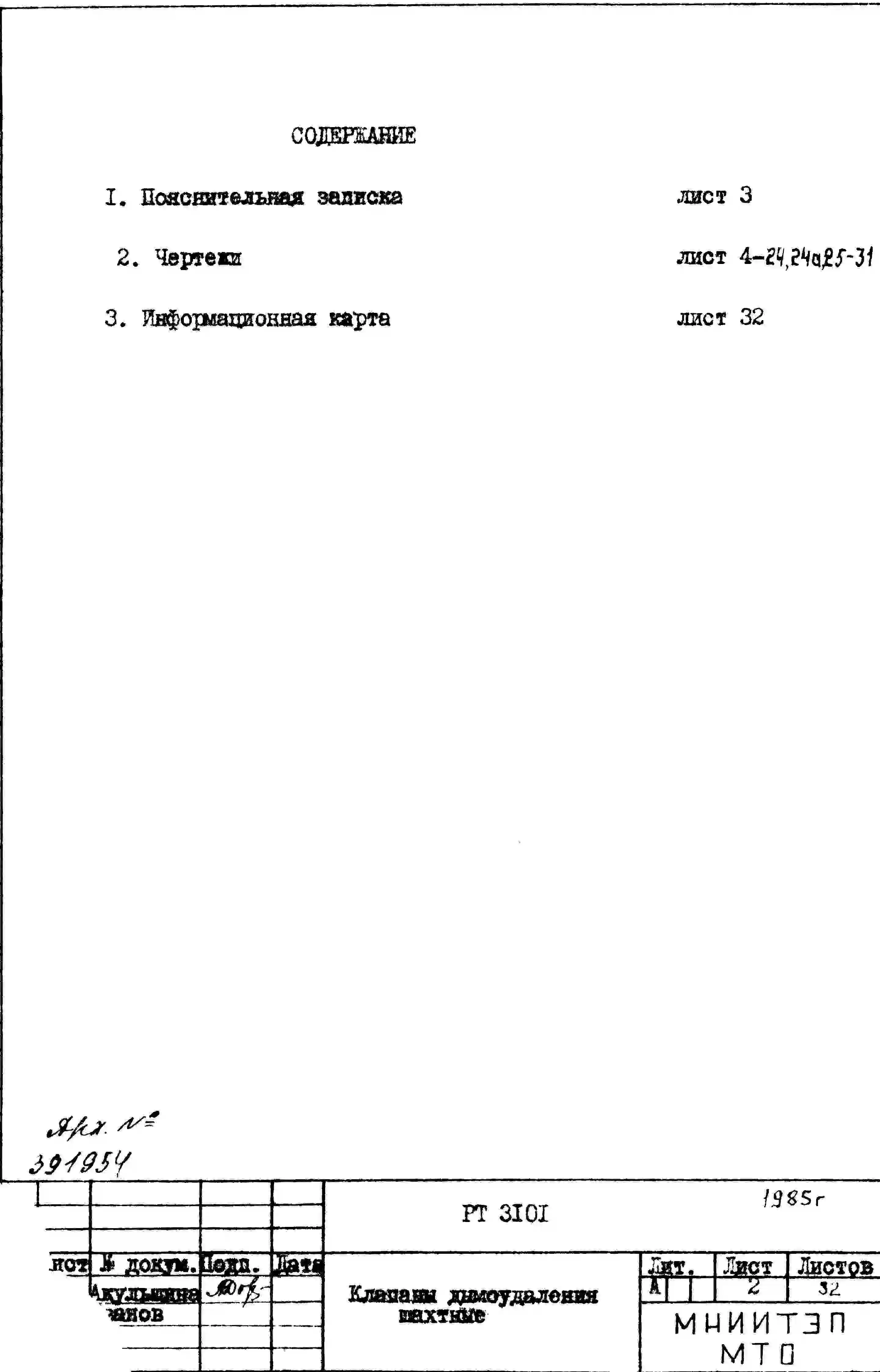 Шифр РТ 3101 Клапаны дымоудаления шахтные (1975 г.)