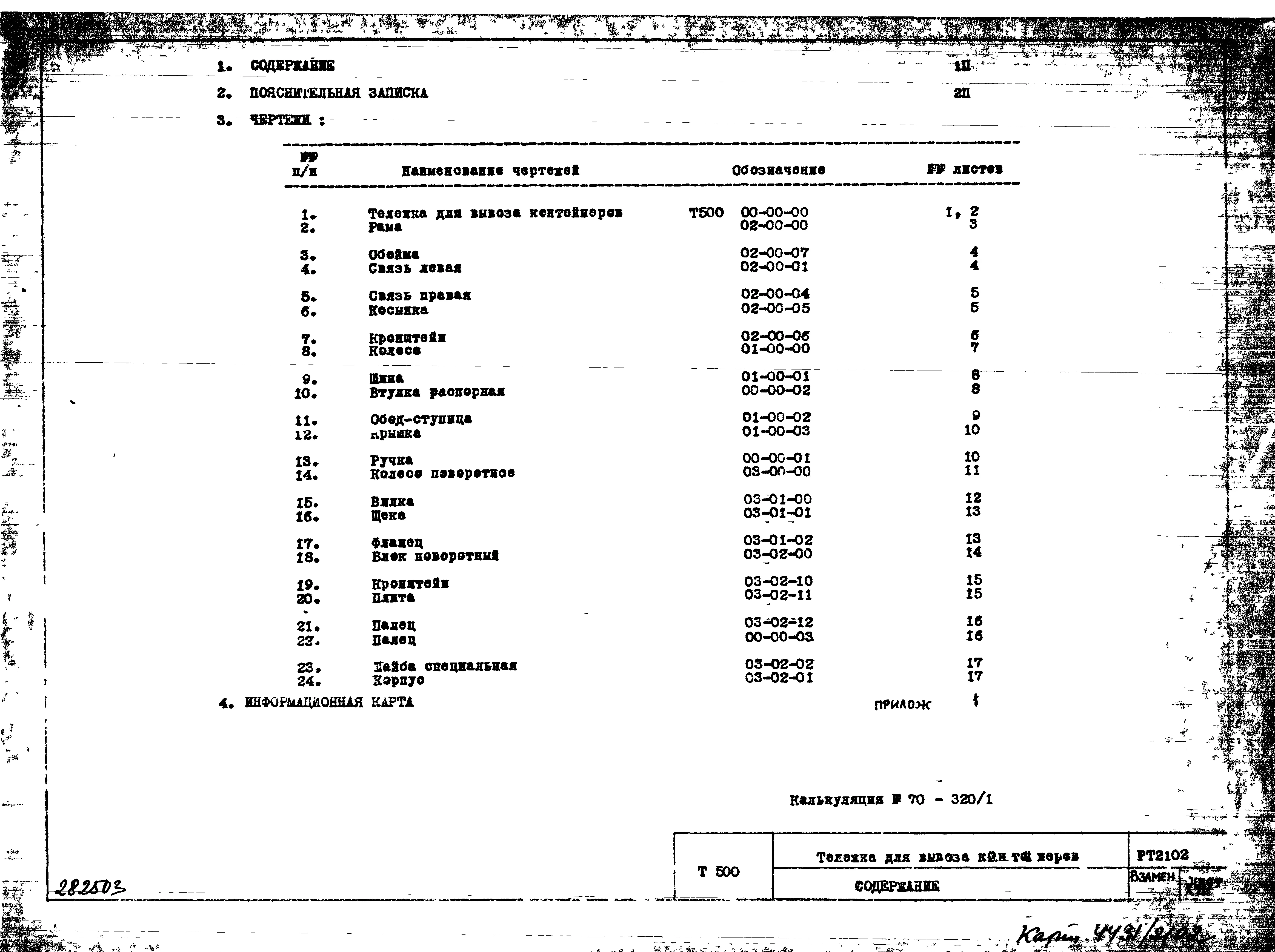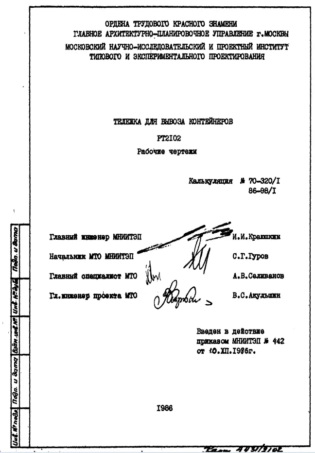 Шифр РТ 2102 Тележка для вывоза контейнеров (1986 г.)