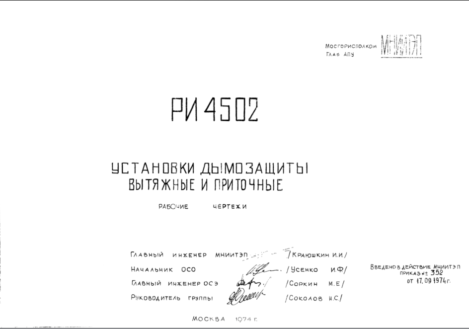 Шифр РИ4502 Установки дымозащиты вытяжные и приточные (1974 г.)