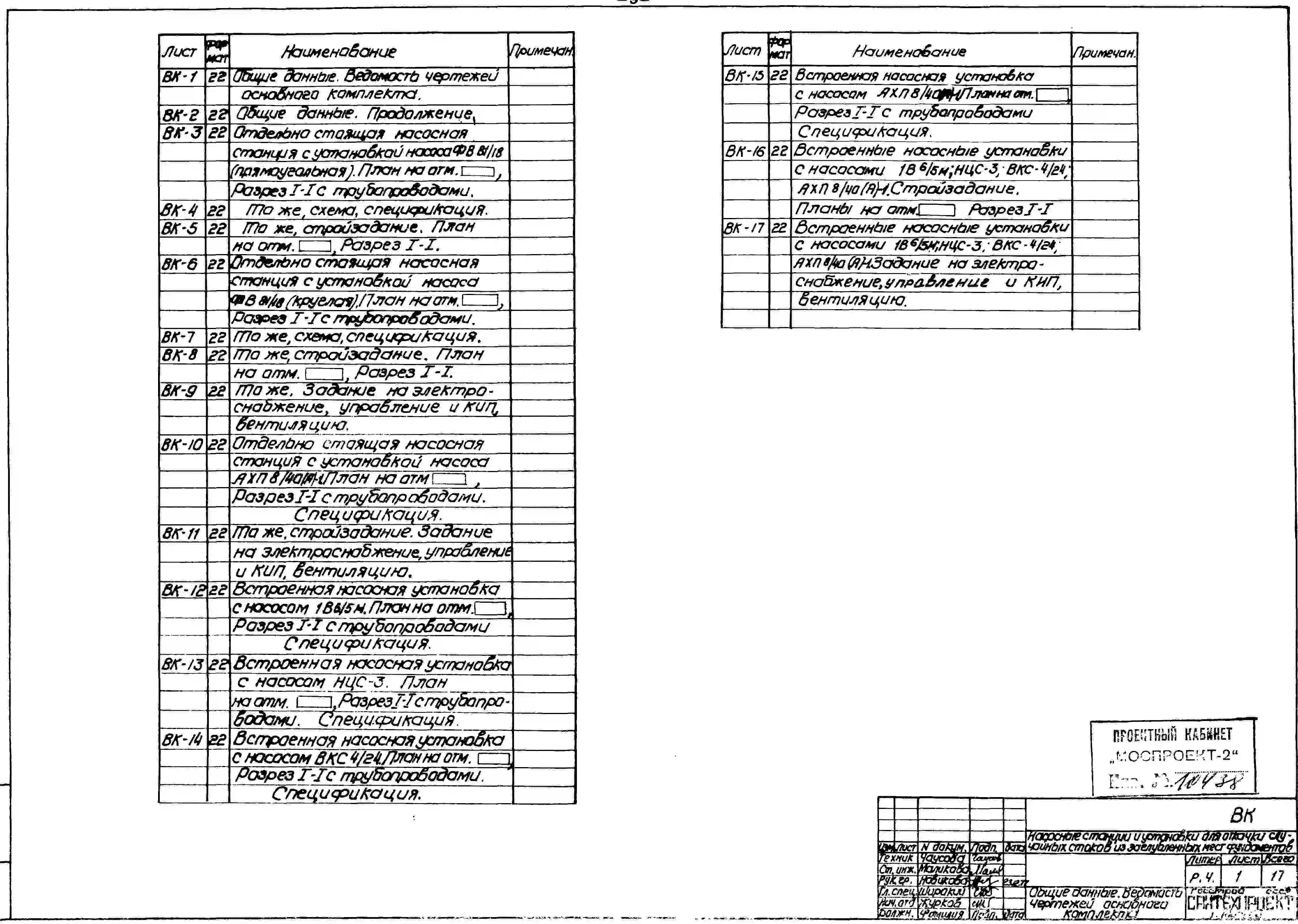 Шифр 6-9-4 Насосоные станции и установки для откачки случайных стоков из заглубленных мест фундаментов (1978 г.)